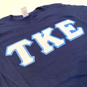 Tau Kappa Epsilon Stitched Letter T-Shirt | Navy | White with Carolina Blue Border