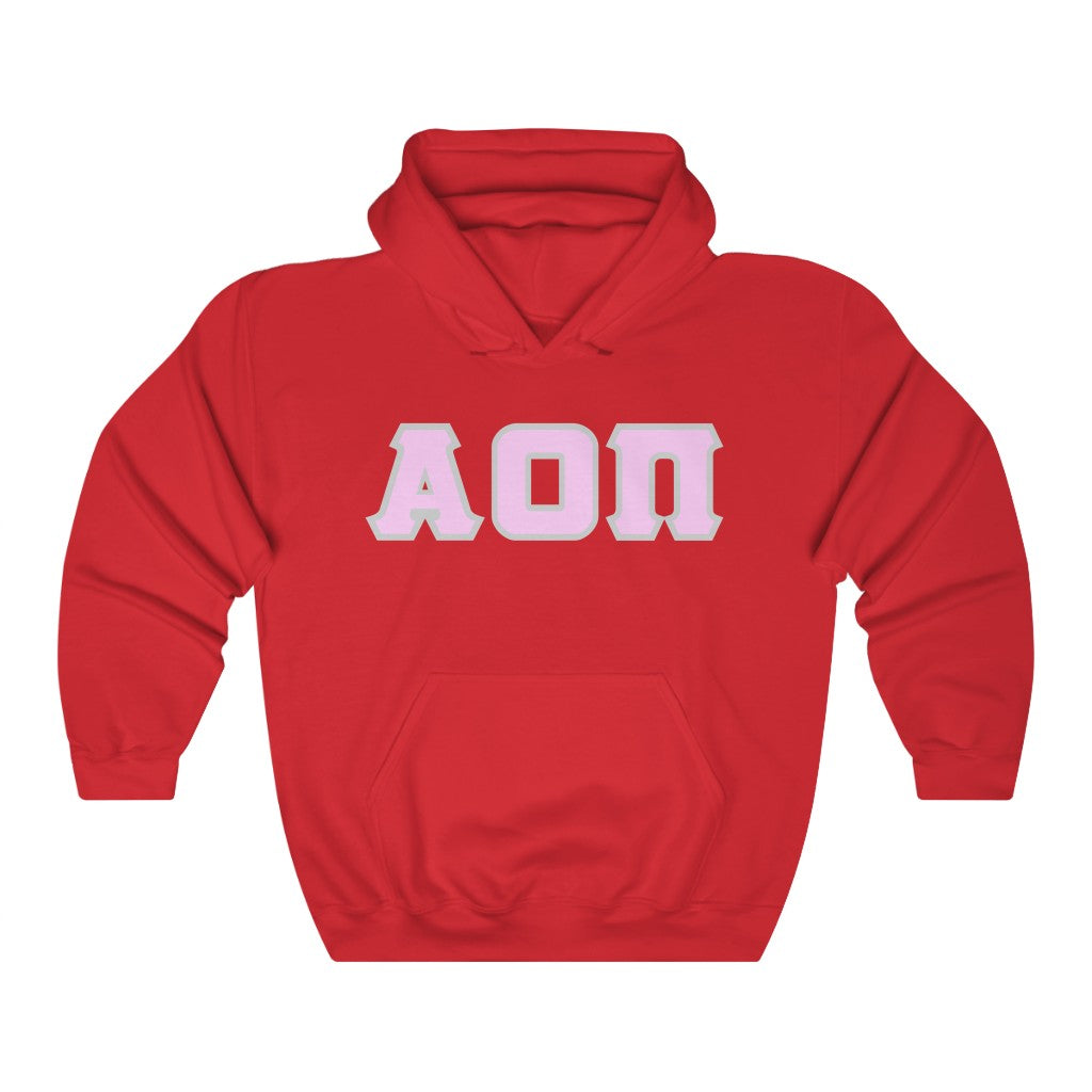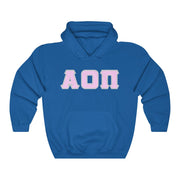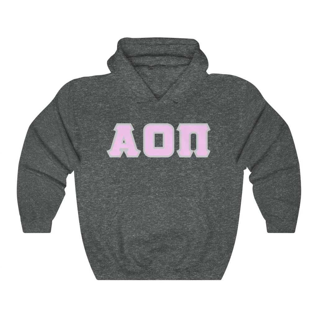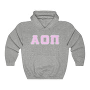 Alpha Omicron Pi Printed Letters | Light Pink with Grey Border Hoodie