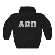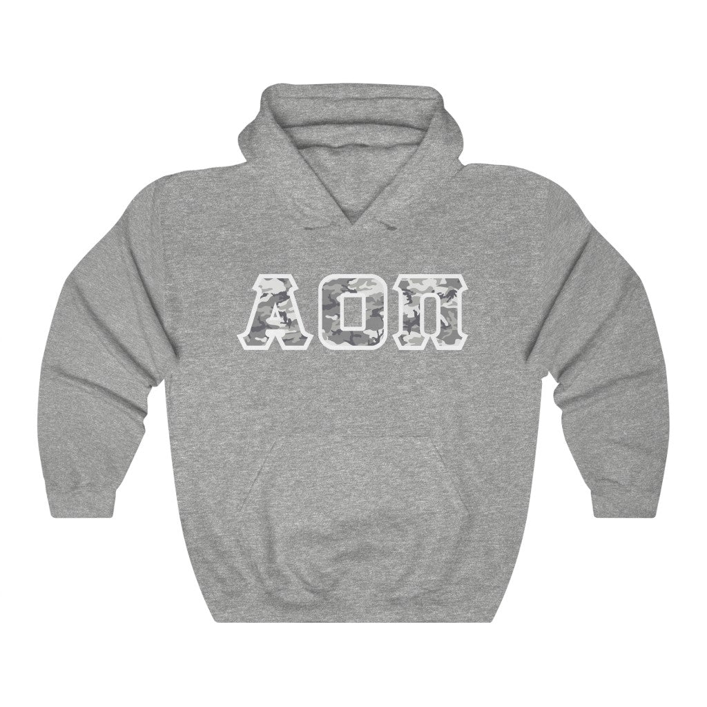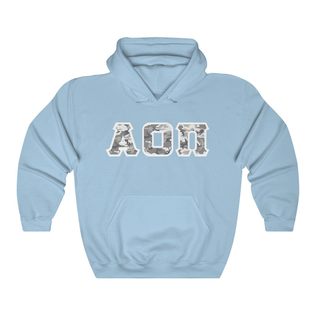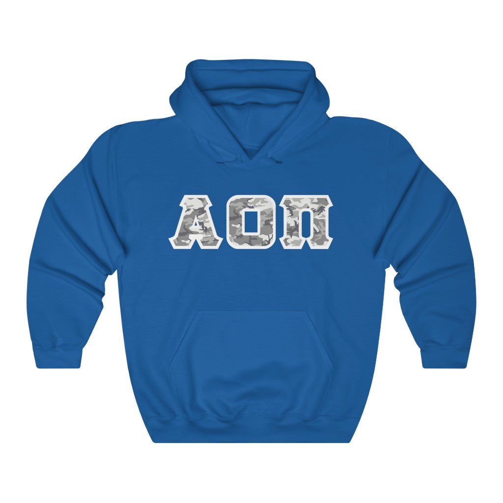 Alpha Omicron Pi Printed Letters | Winter Camo Hoodie