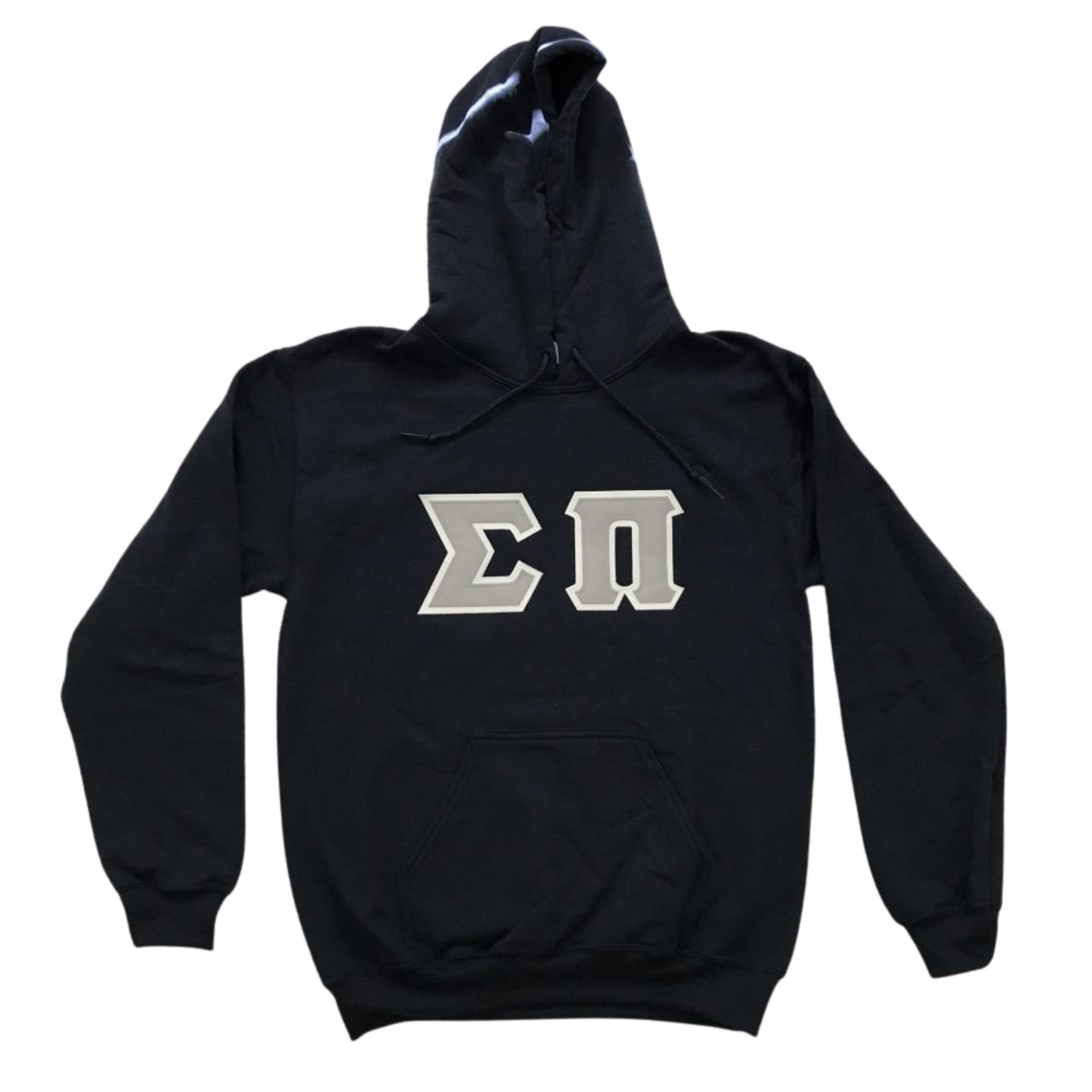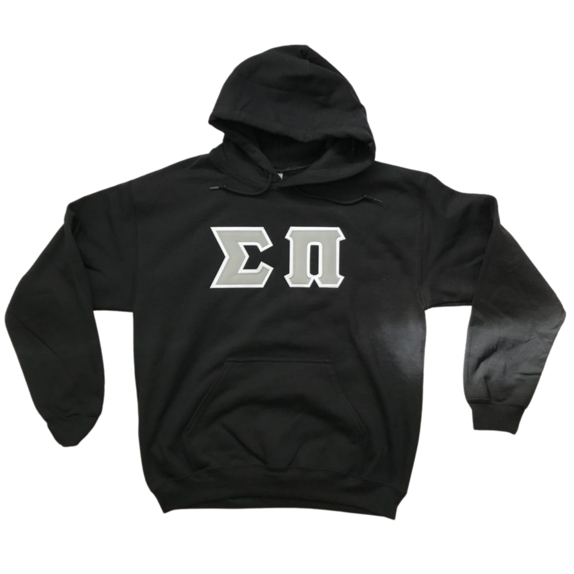 Sigma Pi Stitched Letter Hoodie | Gray with White Border
