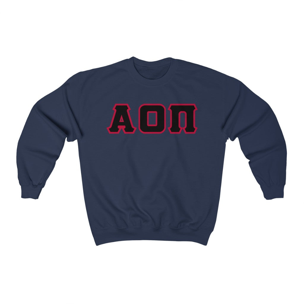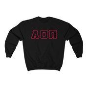 Alpha Omicron Pi Printed Letters | Black with Cardinal Border Crewneck