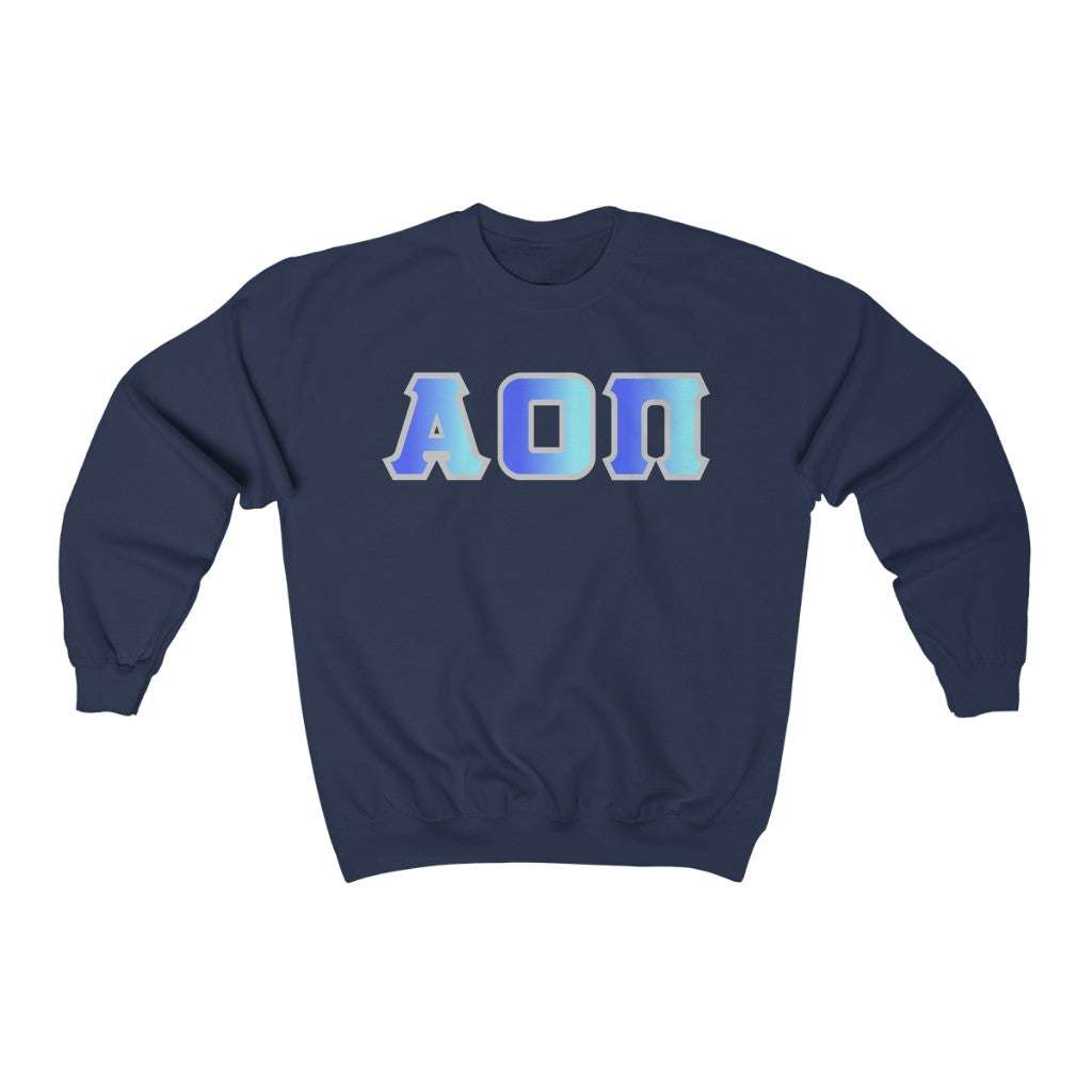 Alpha Omicron Pi Printed Letters | Oceans with Grey Border Crewneck