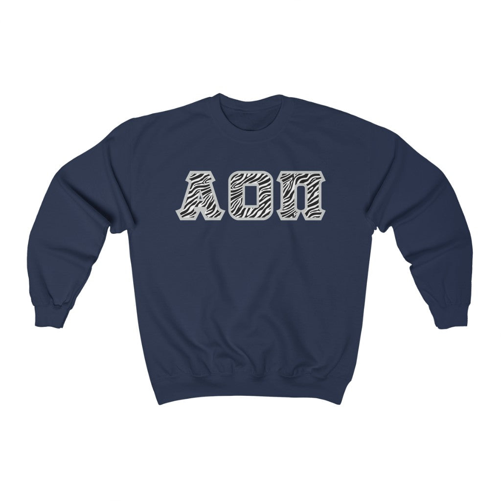 Alpha Omicron Pi Printed Letters | Zebra Print Crewneck