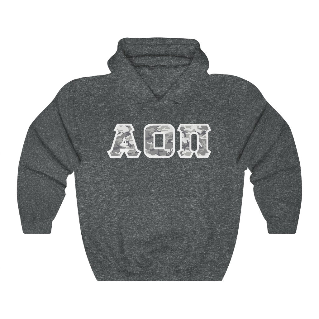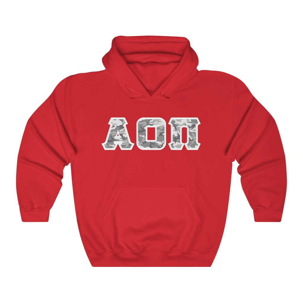 Alpha Omicron Pi Printed Letters | Winter Camo Hoodie