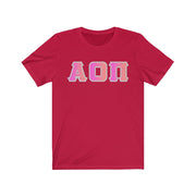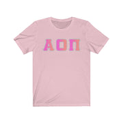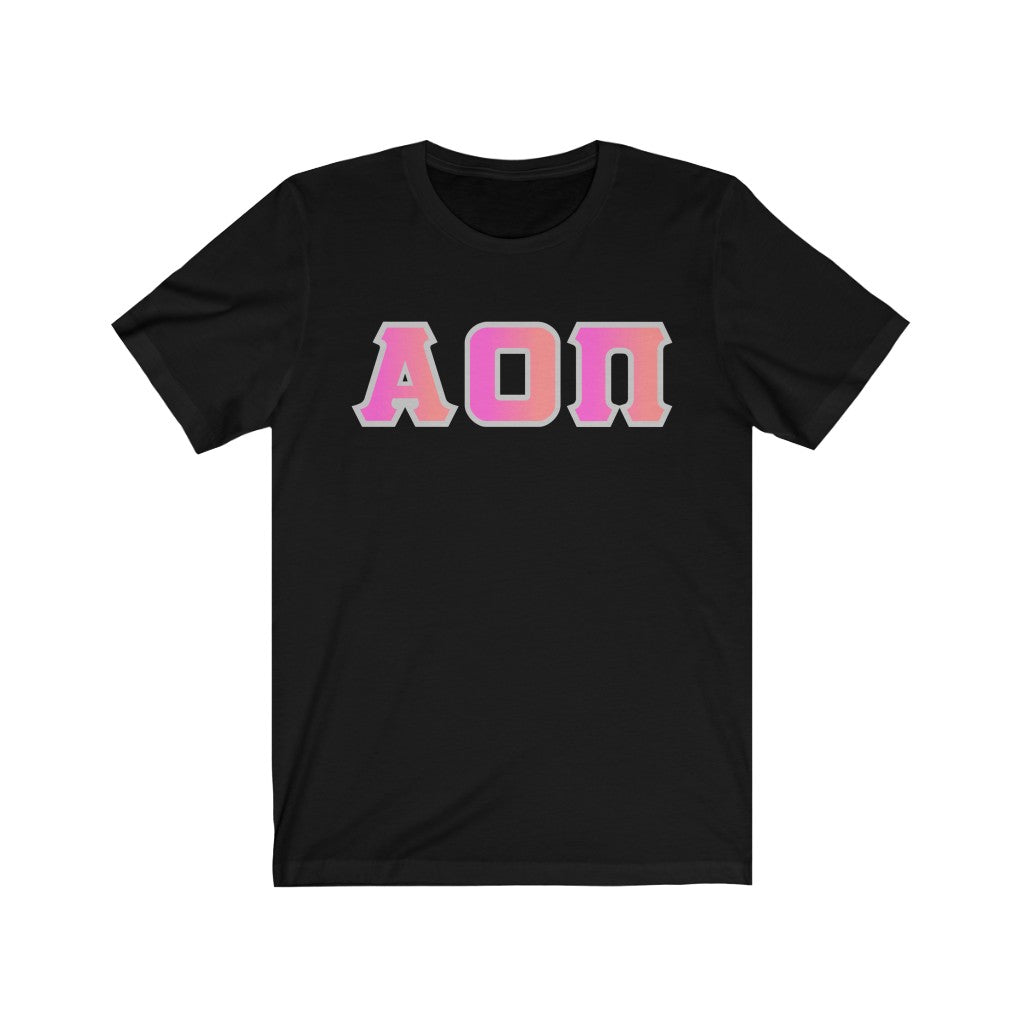 Alpha Omicron Pi Printed Letters | Bubble Gum with Grey Border T-Shirt