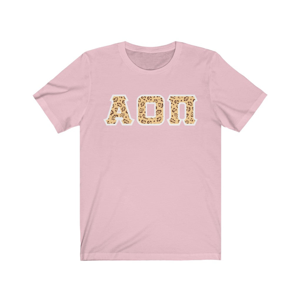 Alpha Omicron Pi Printed Letters | Leopard Print T-Shirt