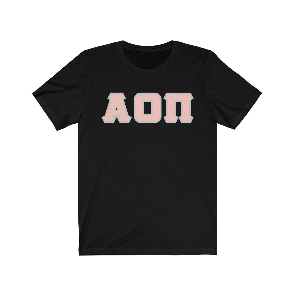 Alpha Omicron Pi Printed Letters | Peach with Grey Border T-Shirt