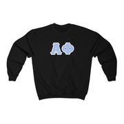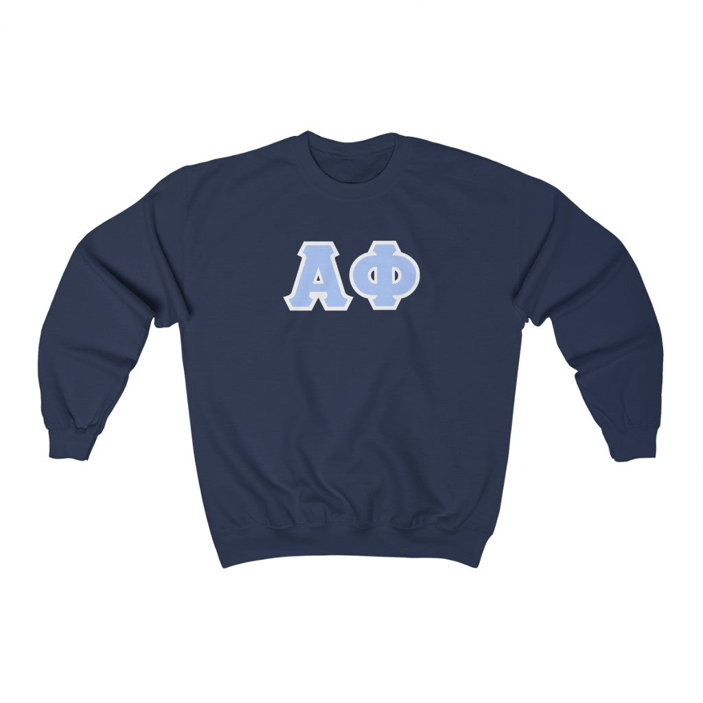 Alpha Phi Printed Letters | Blue & White Border Crewneck