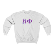 These Alpha Phi sorority letters are printed NOT stitched. They come in a number of color and garment options.