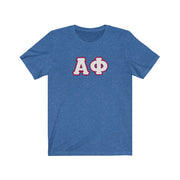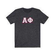 These Alpha Phi sorority letters are printed NOT stitched. They come in a number of color and garment options.