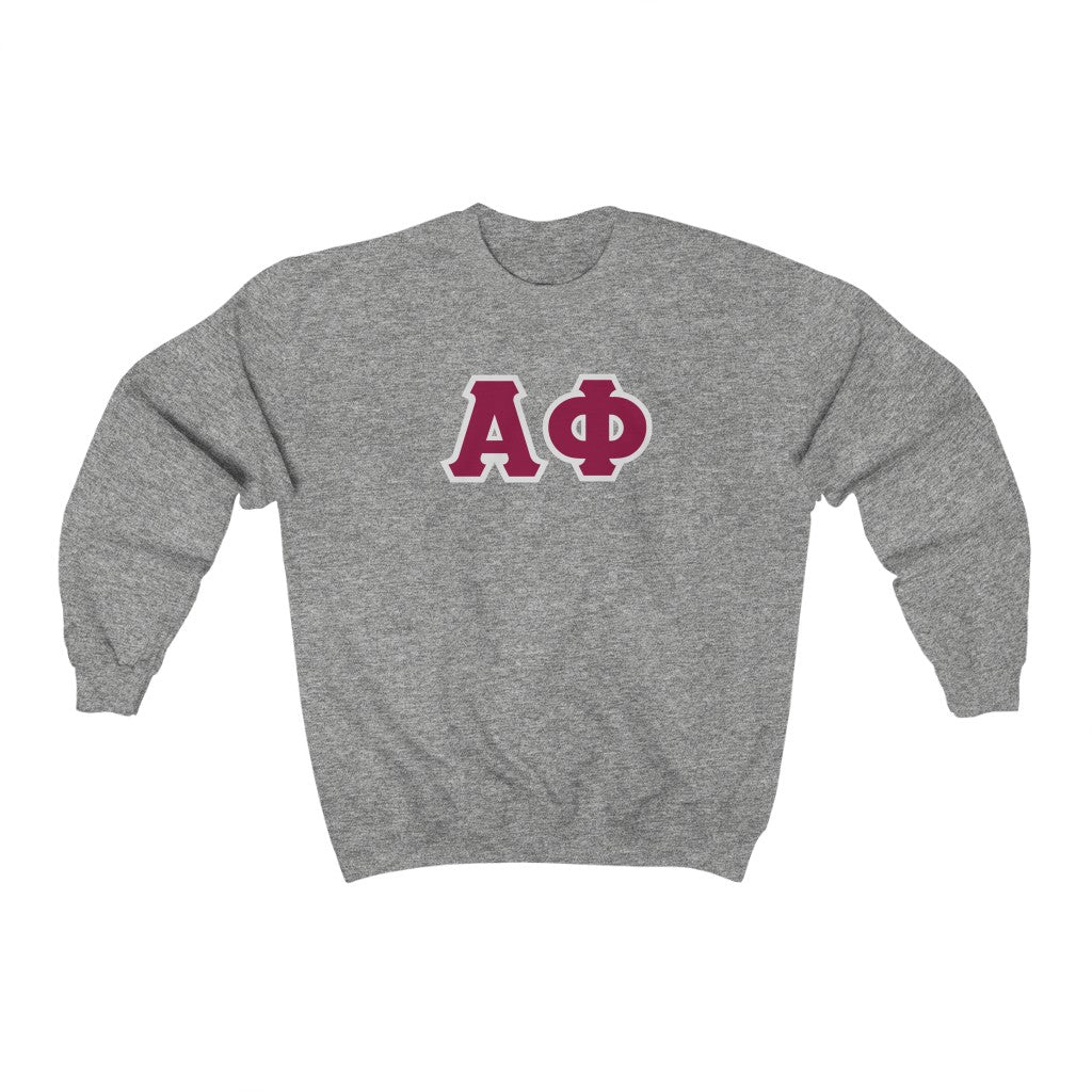 Alpha Phi Printed Letters | Maroon & Grey Border Crewneck