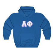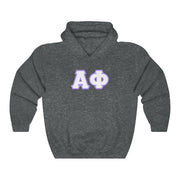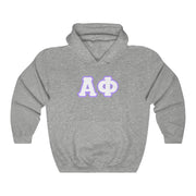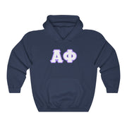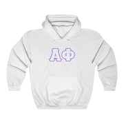 Alpha Phi Printed Letters | White & Violet Border Hoodie
