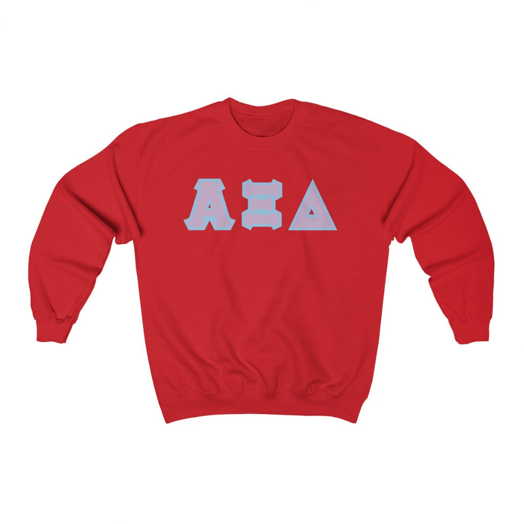 These Alpha Xi Delta sorority letters are printed NOT stitched. They come in a number of color and garment options.