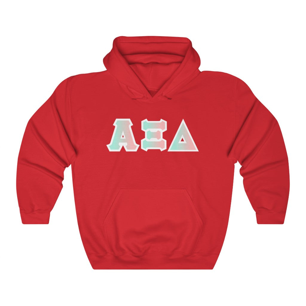 These Alpha Xi Delta sorority letters are printed NOT stitched. They come in a number of color and garment options.
