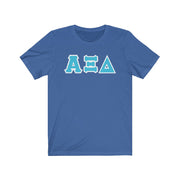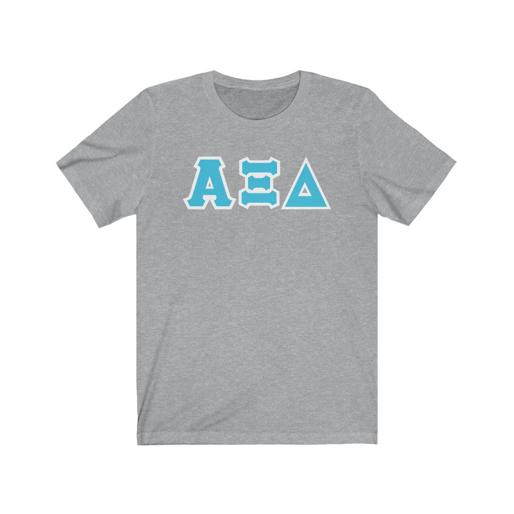 These Alpha Xi Delta sorority letters are printed NOT stitched. They come in a number of color and garment options.