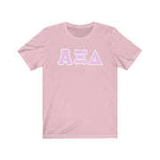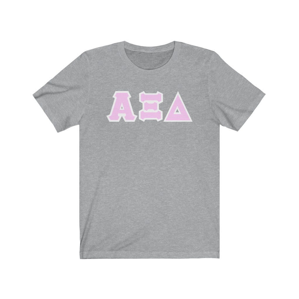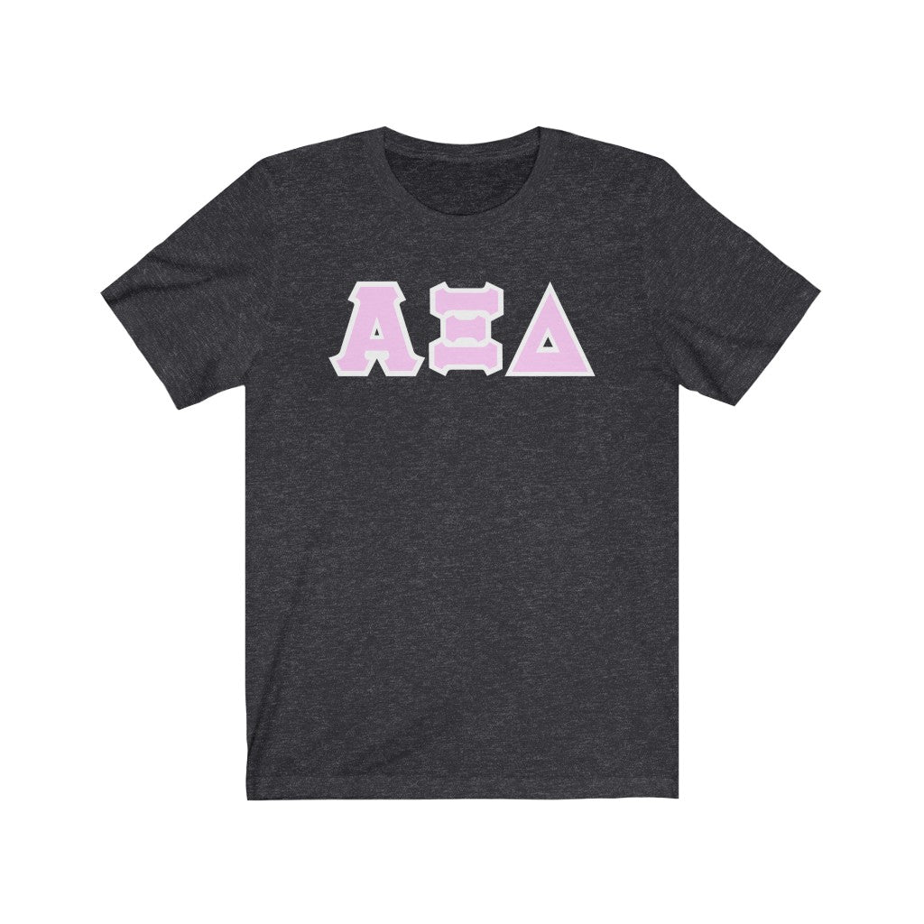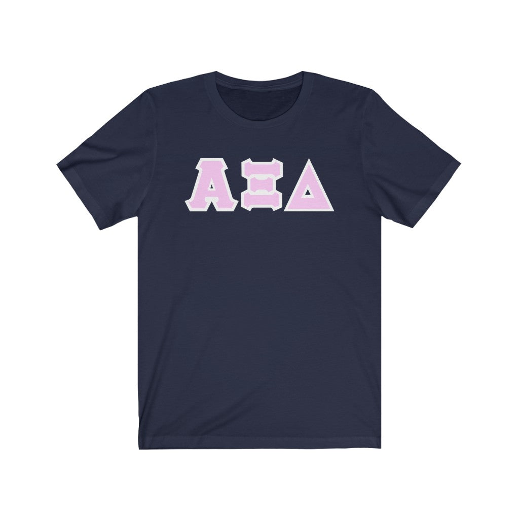 These Alpha Xi Delta sorority letters are printed NOT stitched. They come in a number of color and garment options.