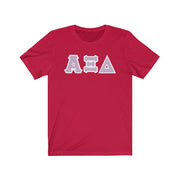 These Alpha Xi Delta sorority letters are printed NOT stitched. They come in a number of color and garment options.