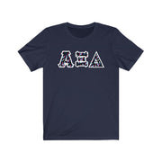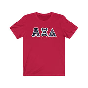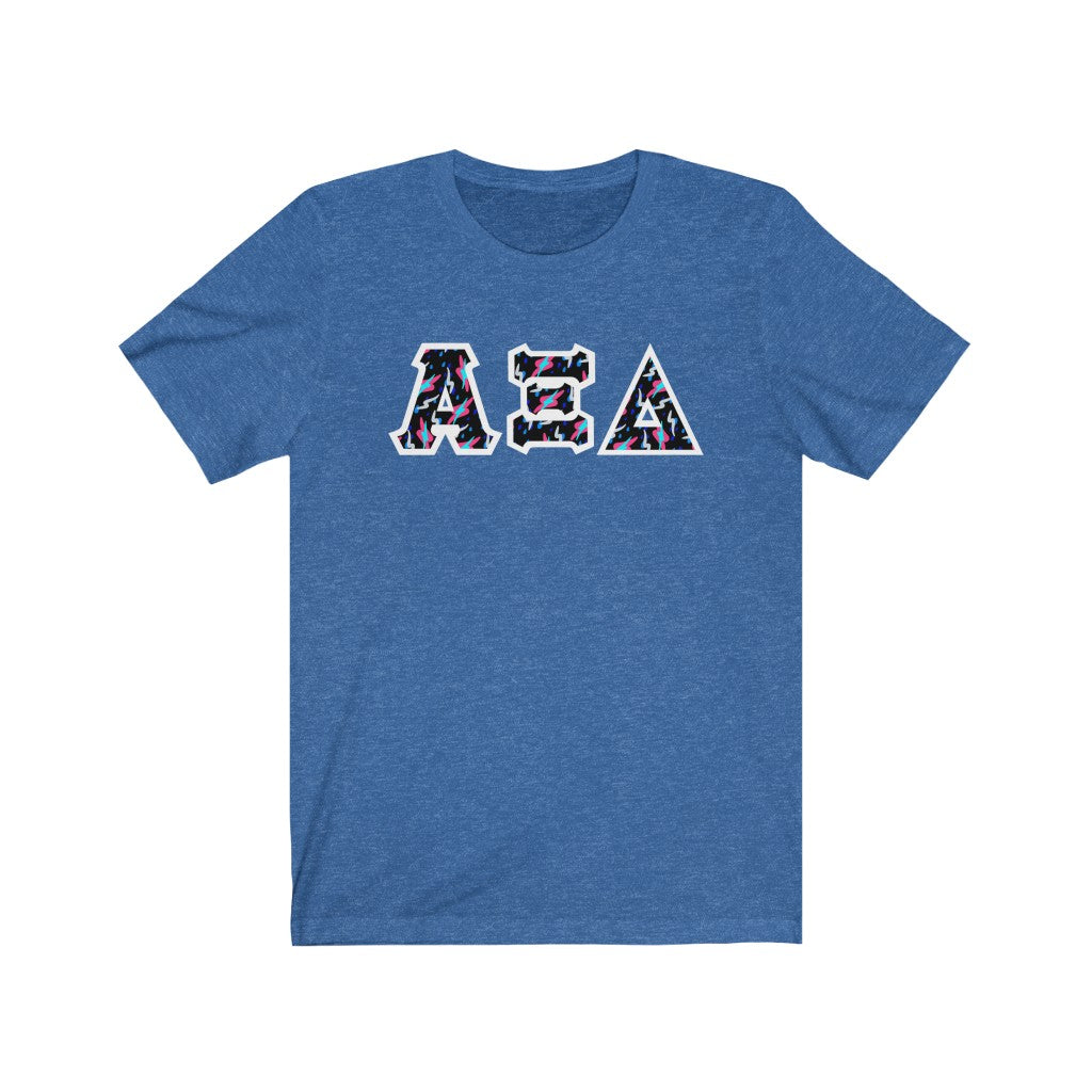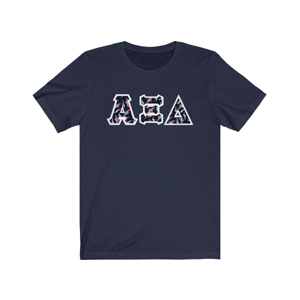 These Alpha Xi Delta sorority letters are printed NOT stitched. They come in a number of color and garment options.