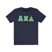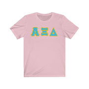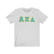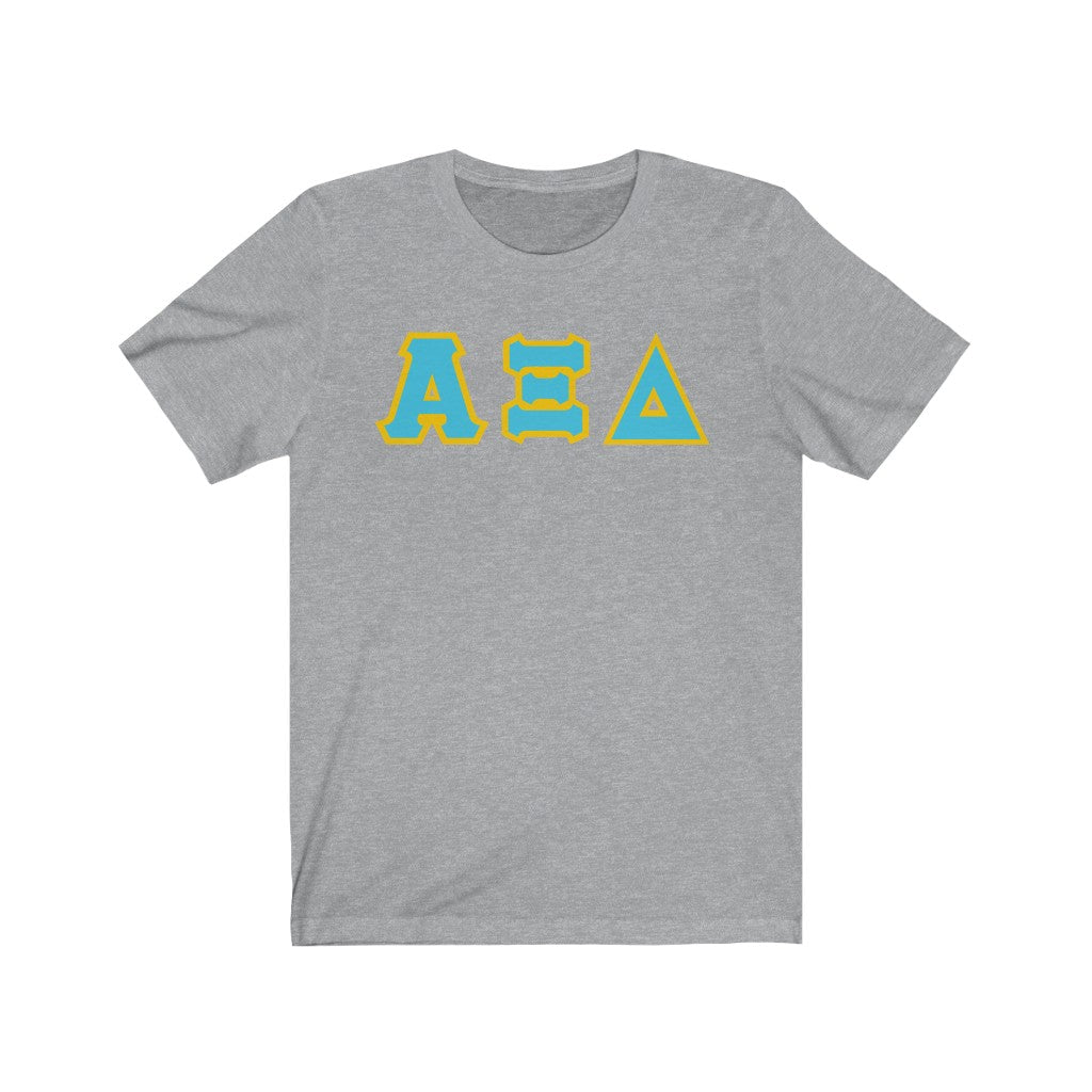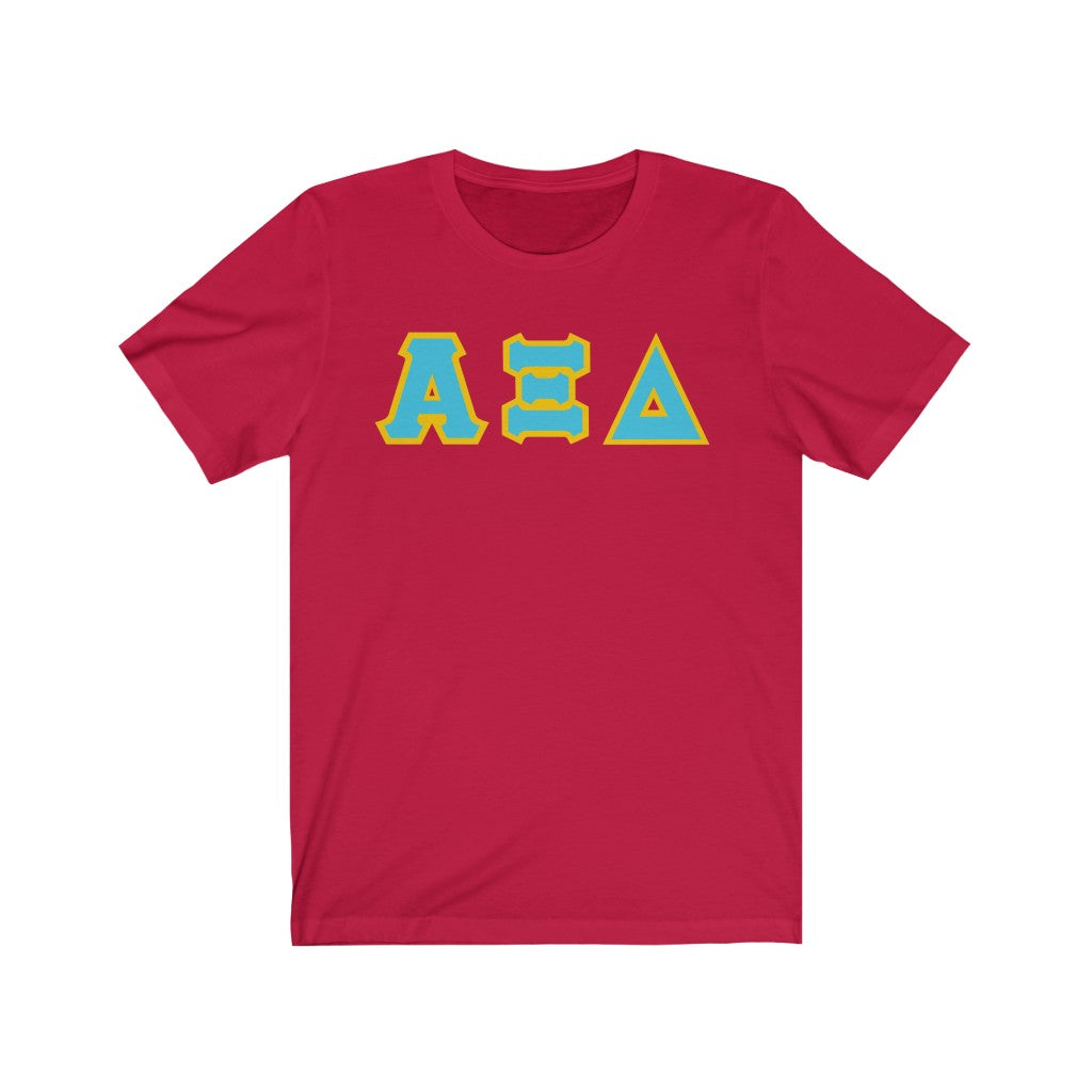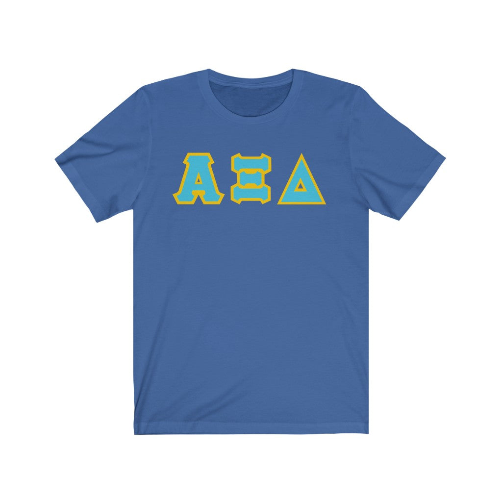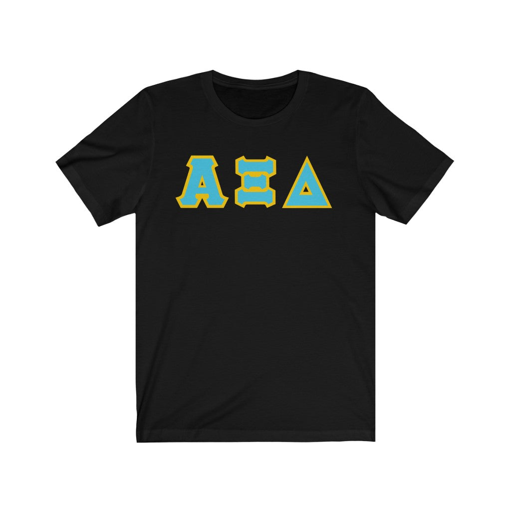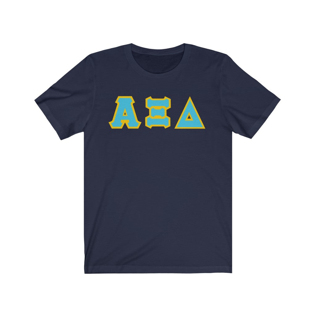 These Alpha Xi Delta sorority letters are printed NOT stitched. They come in a number of color and garment options.