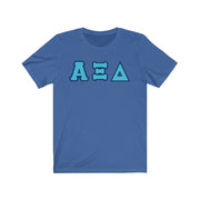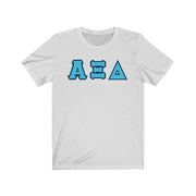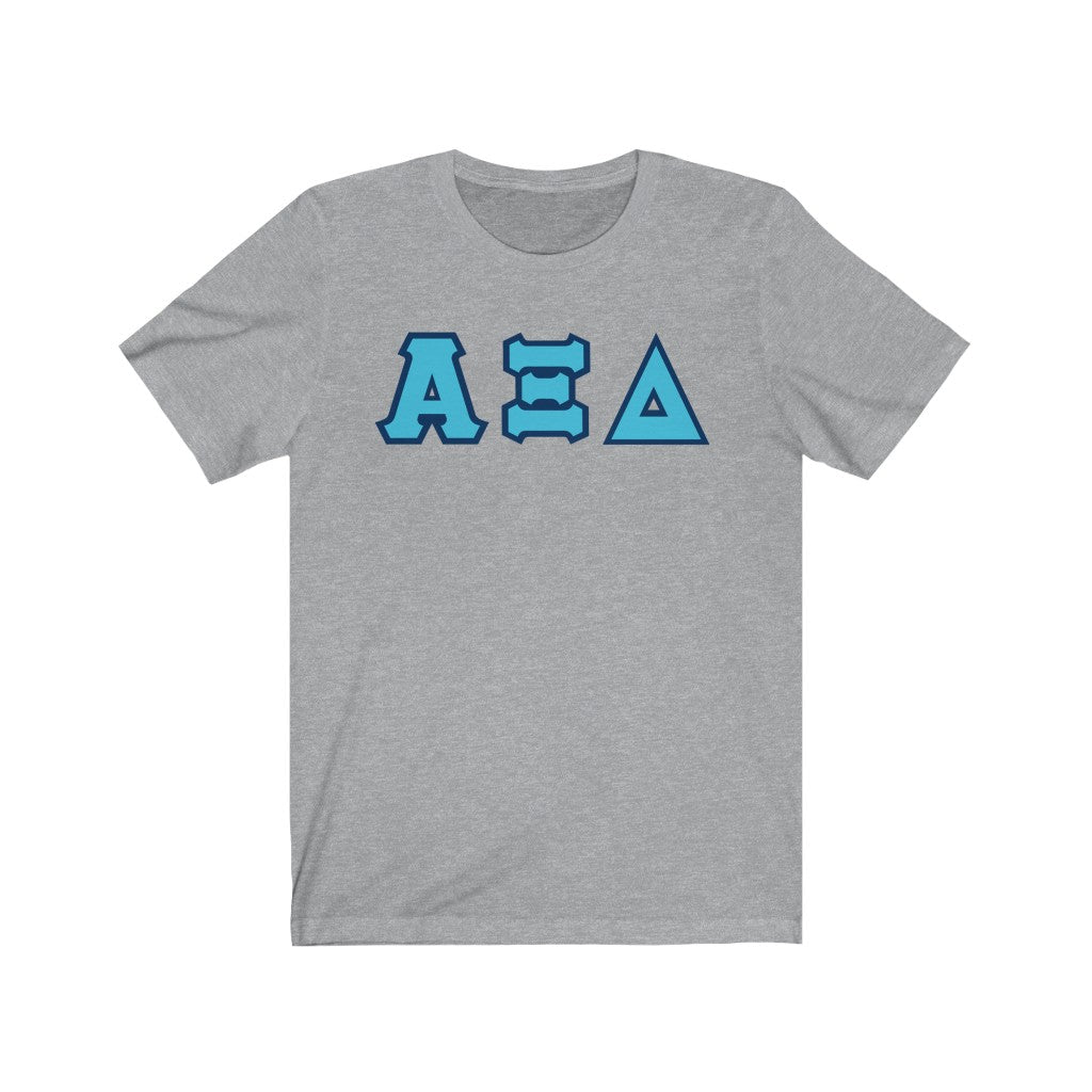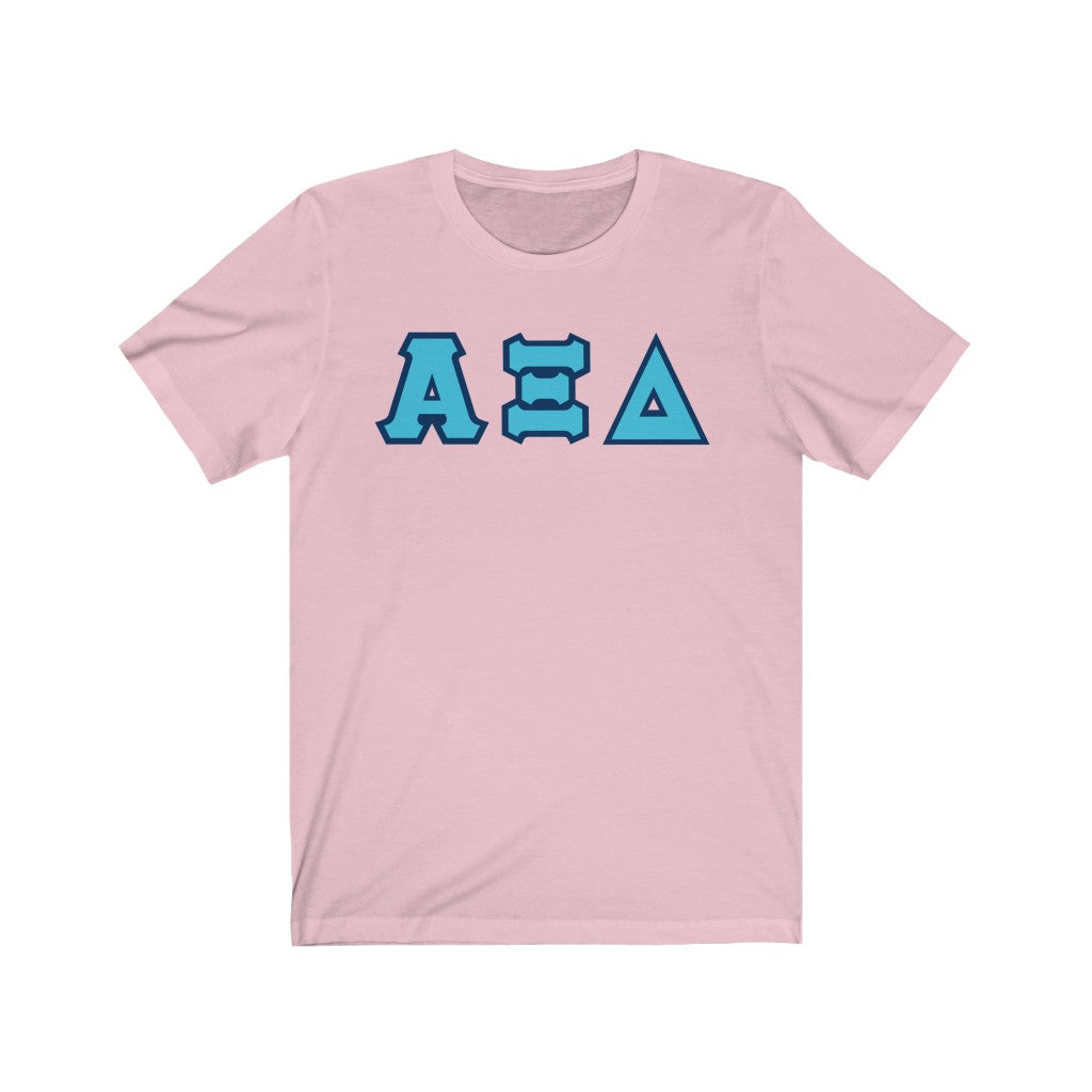 These Alpha Xi Delta sorority letters are printed NOT stitched. They come in a number of color and garment options.