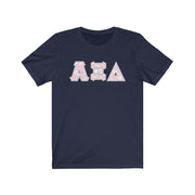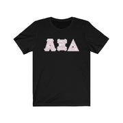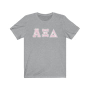 These Alpha Xi Delta sorority letters are printed NOT stitched. They come in a number of color and garment options.