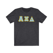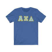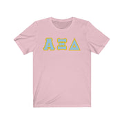 These Alpha Xi Delta sorority letters are printed NOT stitched. They come in a number of color and garment options.