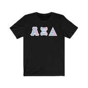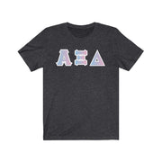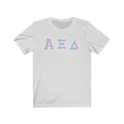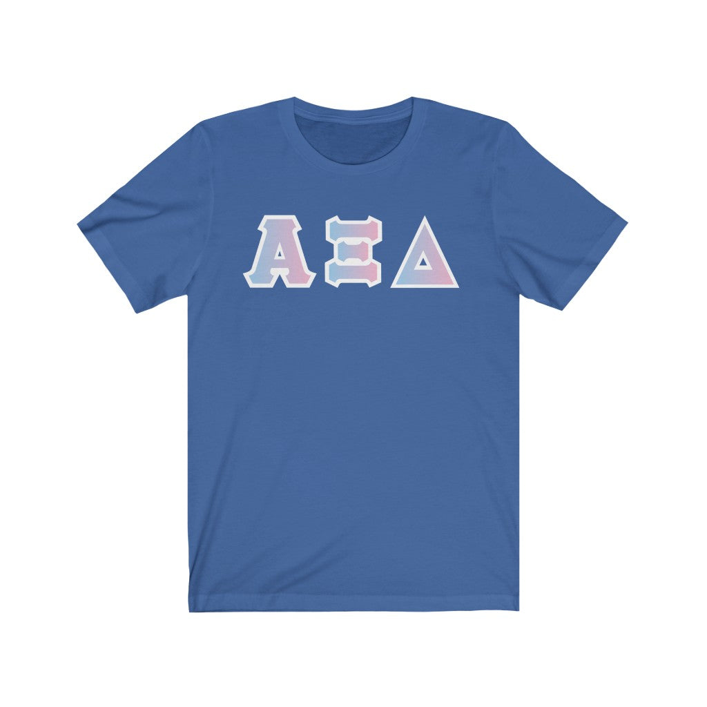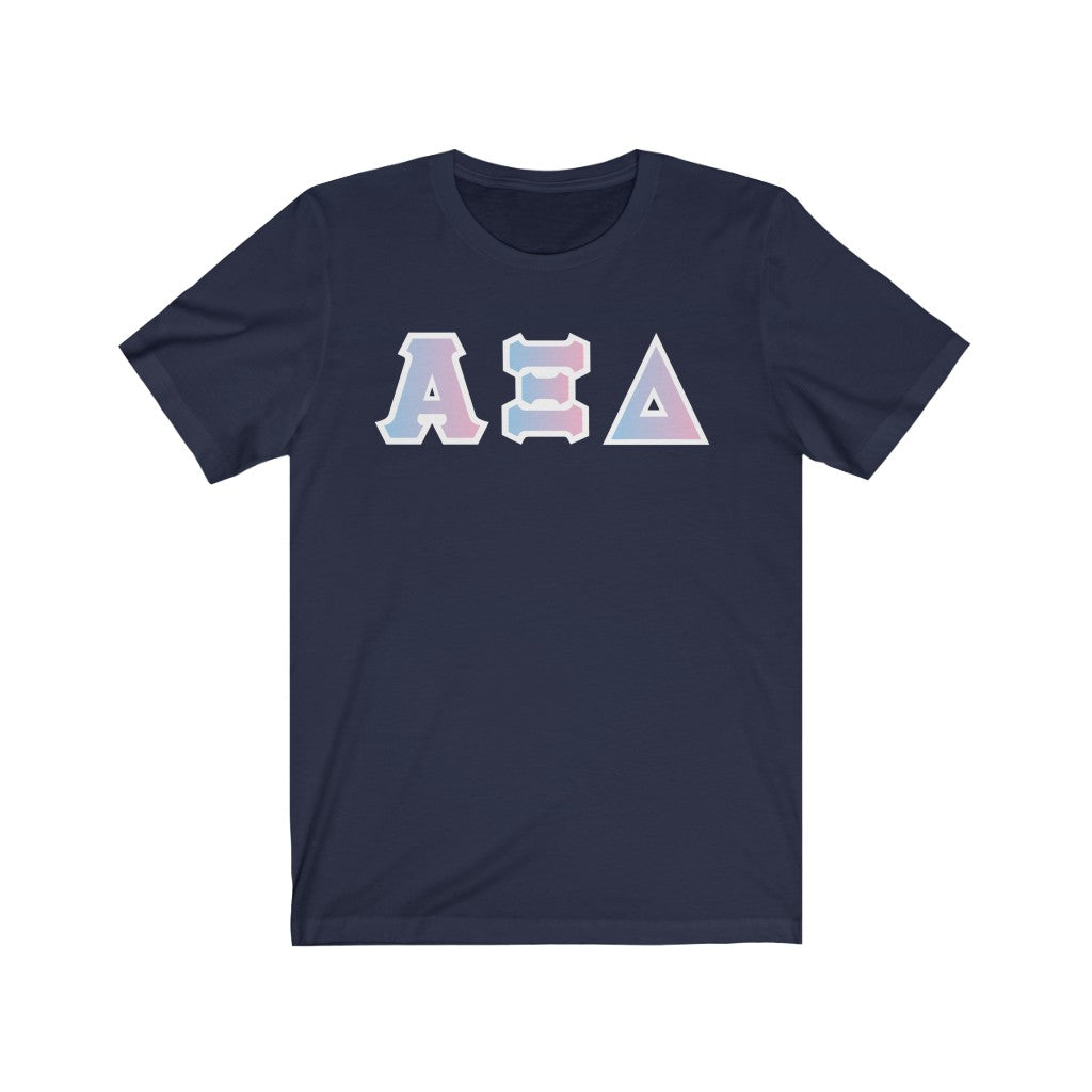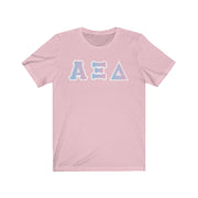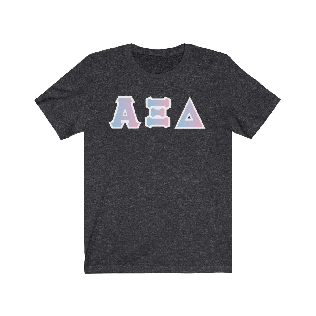 These Alpha Xi Delta sorority letters are printed NOT stitched. They come in a number of color and garment options.