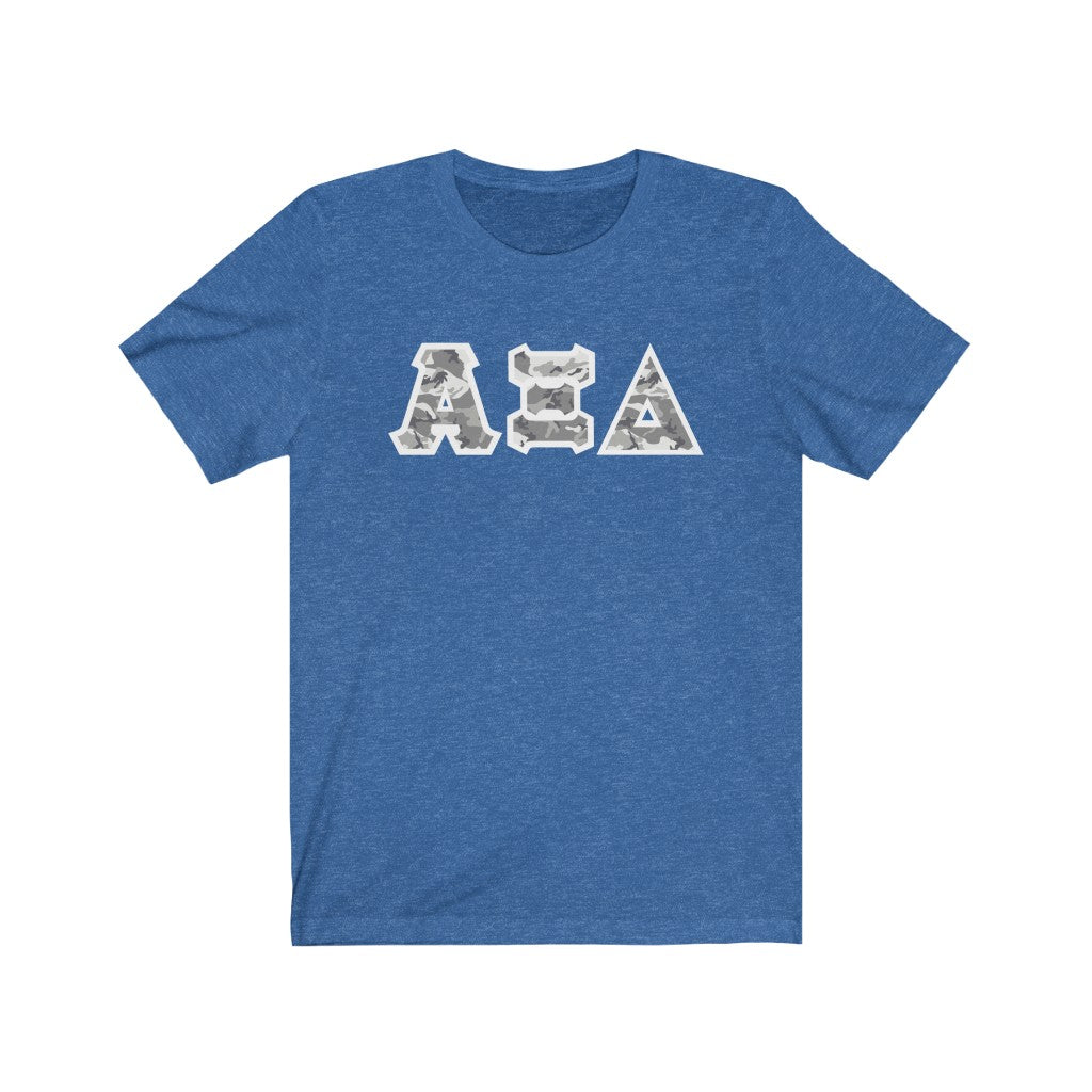These Alpha Xi Delta sorority letters are printed NOT stitched. They come in a number of color and garment options.