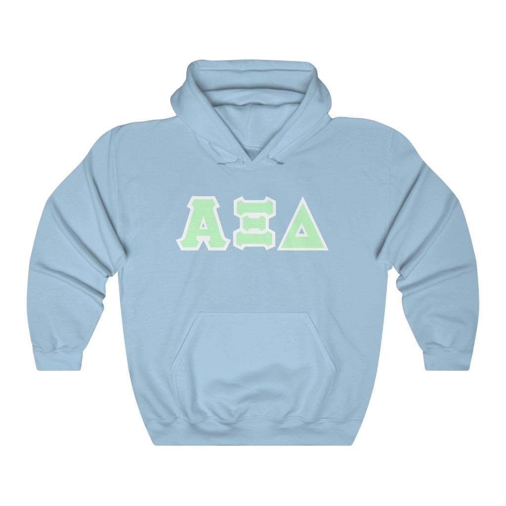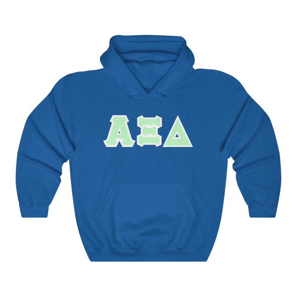 These Alpha Xi Delta sorority letters are printed NOT stitched. They come in a number of color and garment options.