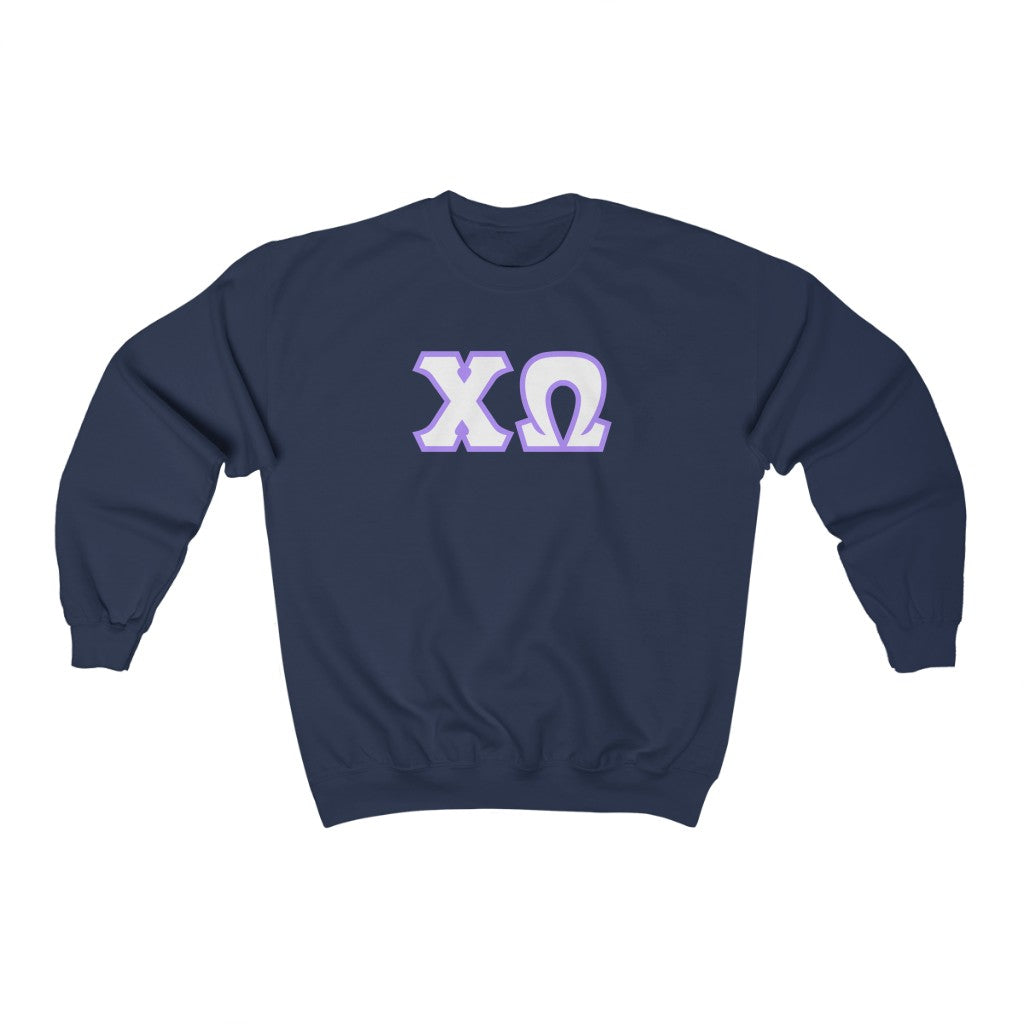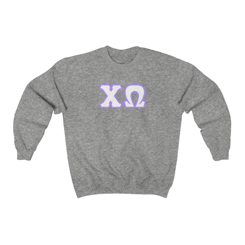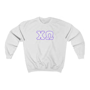 Chi Omega Print Letters | White with Purple Border Crewneck