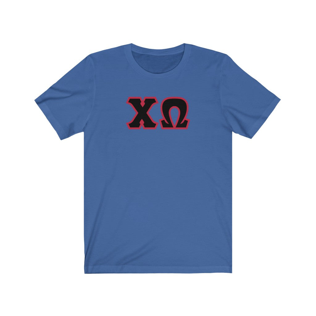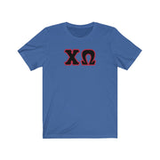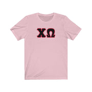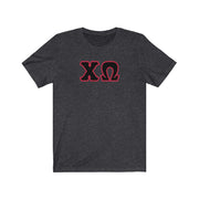 Chi Omega Print Letters | Black & Cardinal Border T-Shirt