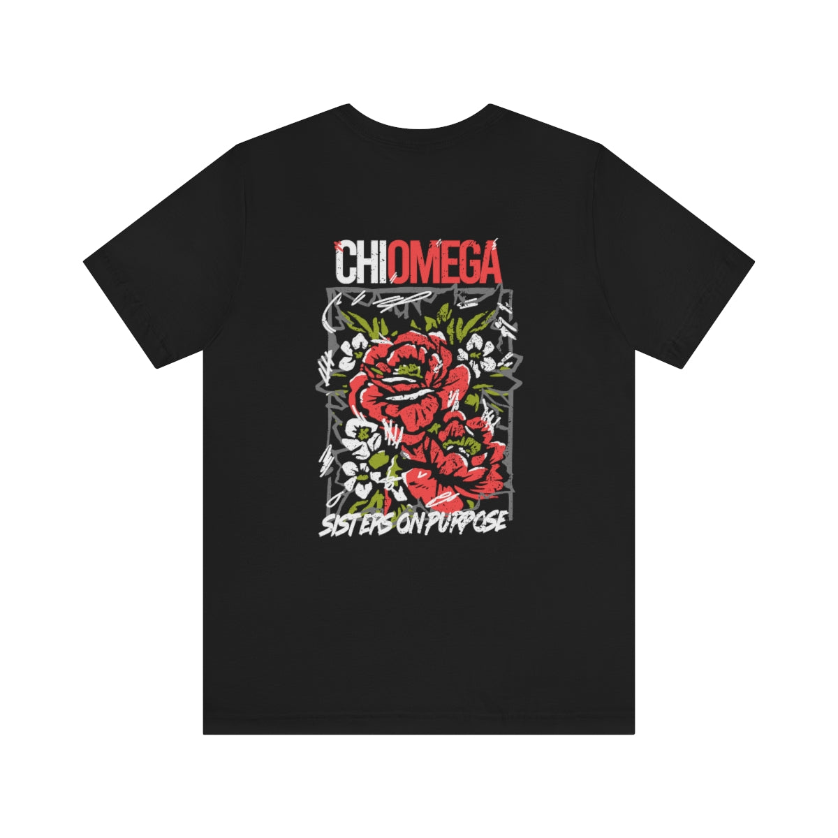 Greek State of Mind offers this Chi Omega Grunge Roses design in a number of different style garments. This is the perfect gift for any sisters of Chi Omega . This design can be customized for any group event such as recruitment, bid day, formal, etc. Show off your CHI O pride today!
