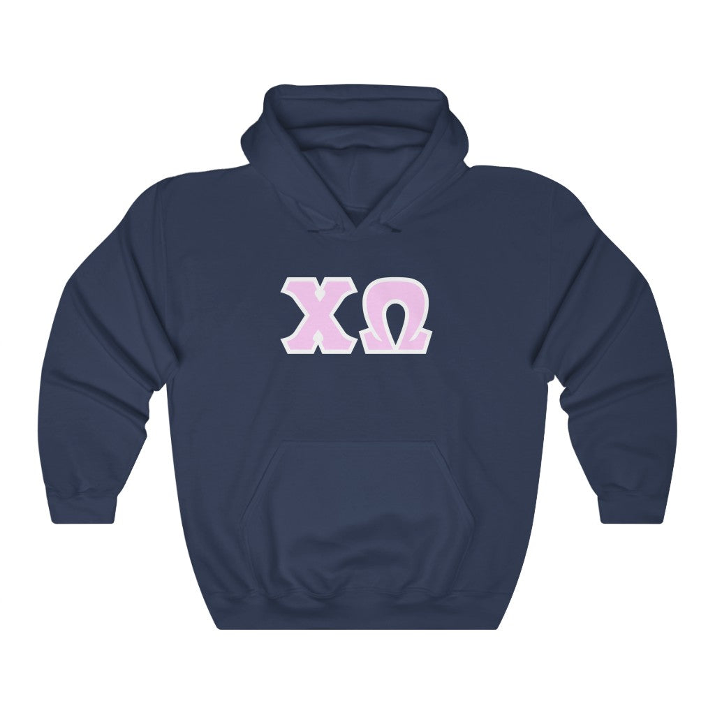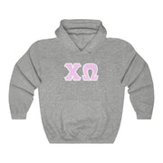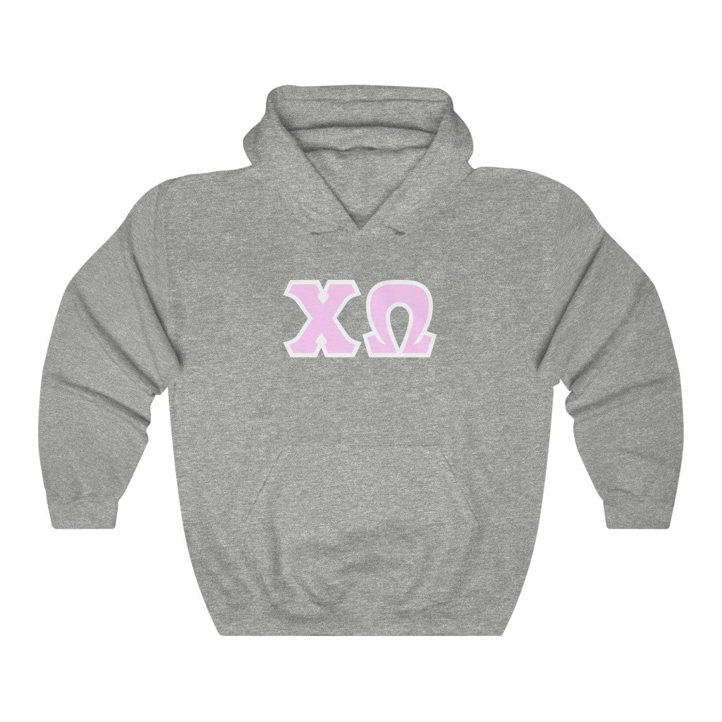 Chi Omega Print Letters | Pink with White Border Hoodie