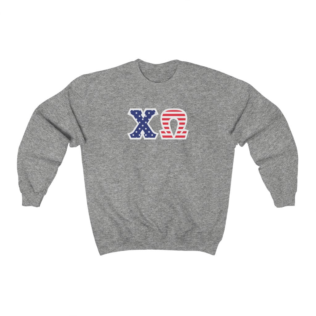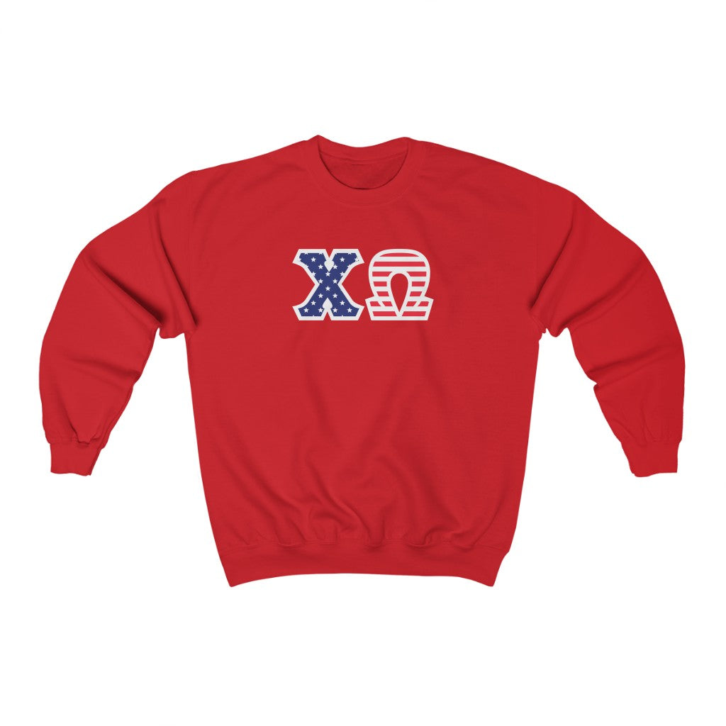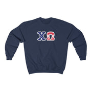 Chi Omega Printed Letters | American Flag Crewneck