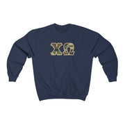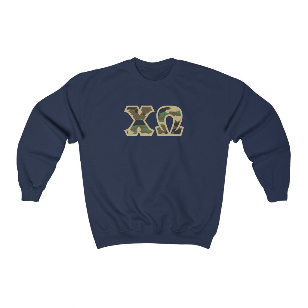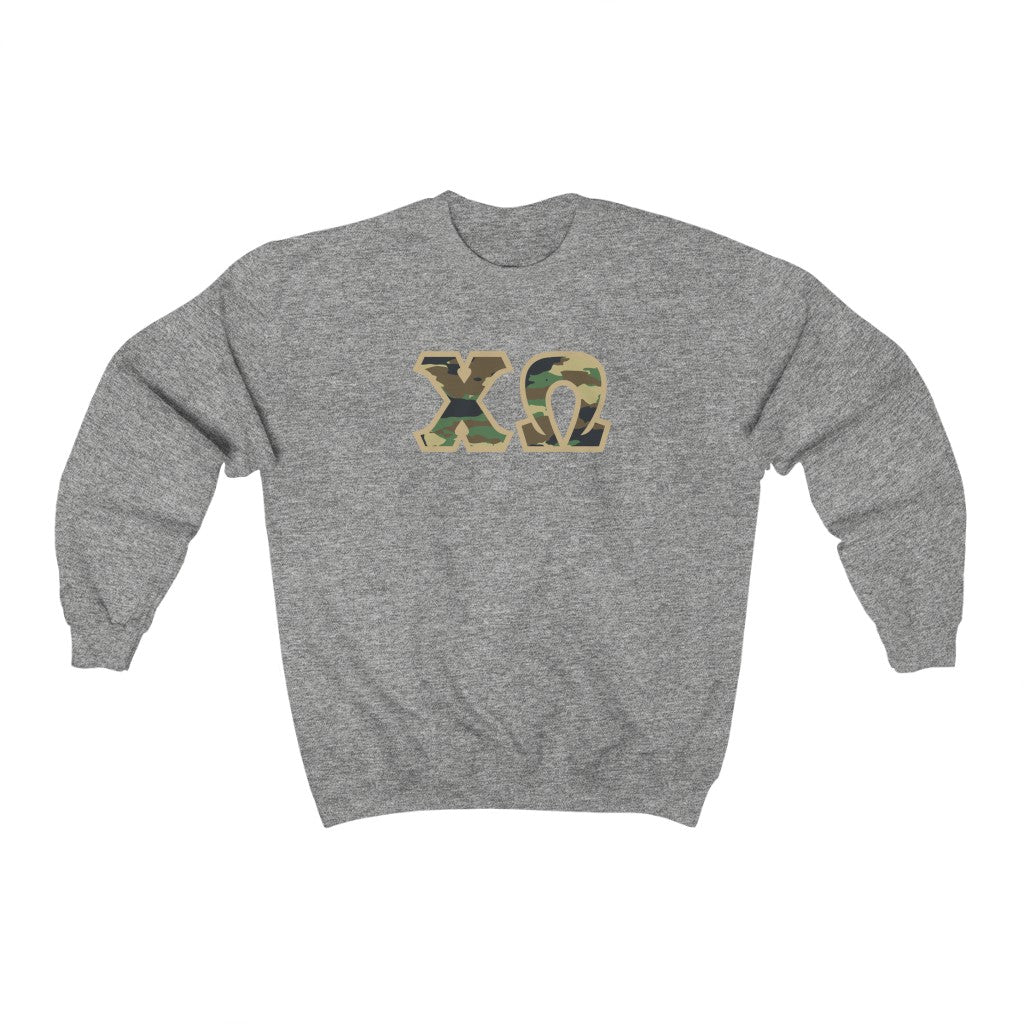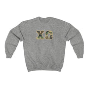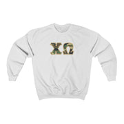 Chi Omega Printed Letters | Camouflage Crewneck