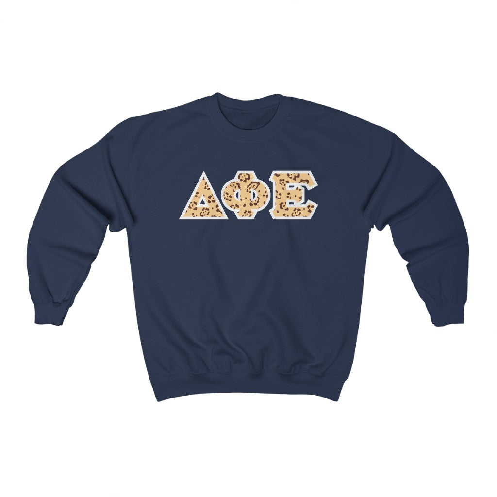 Delta Phi Epsilon Printed Letters | Leopard Print Crewneck