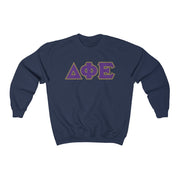 Delta Phi Epsilon Printed Letters | Purple with Gold Border Crewneck