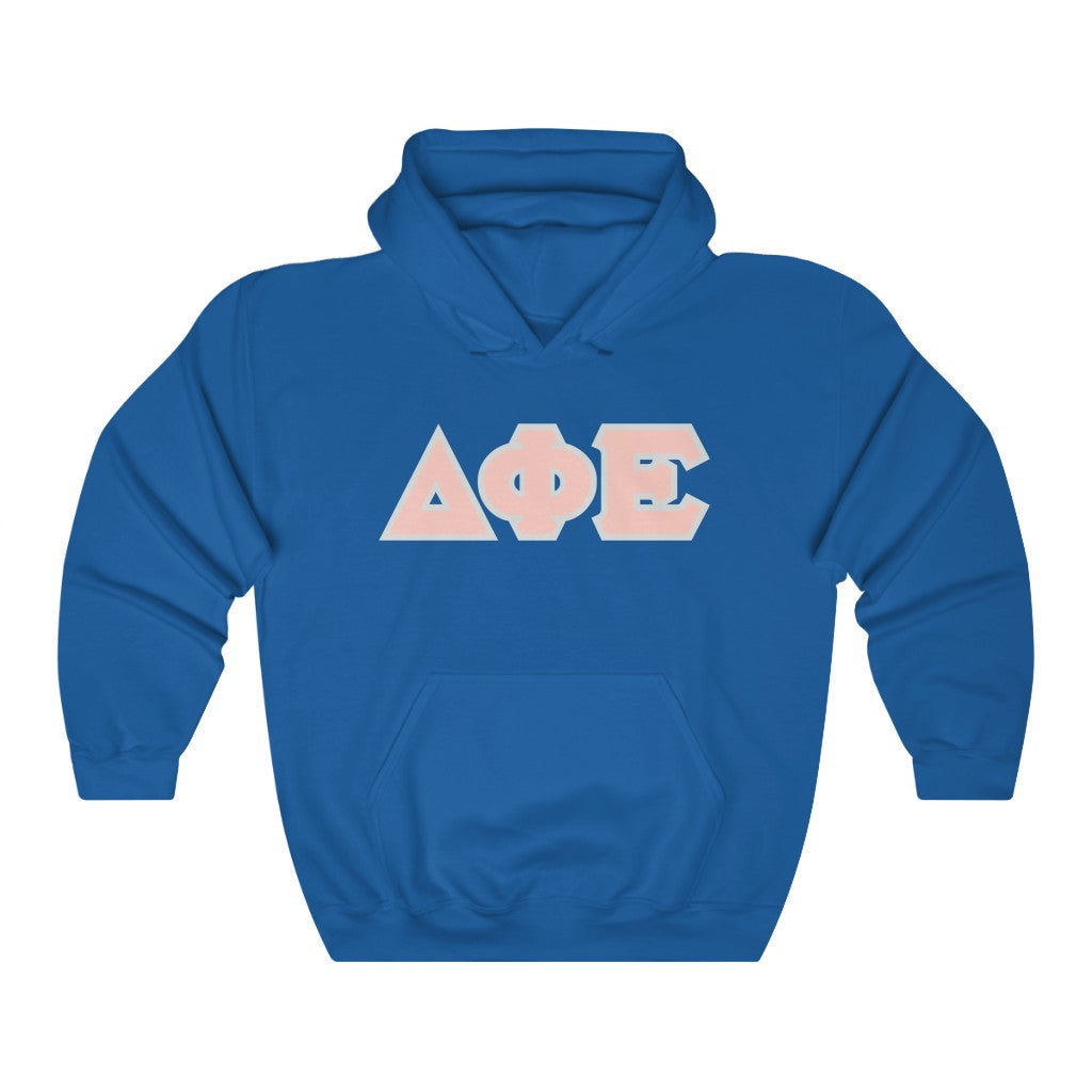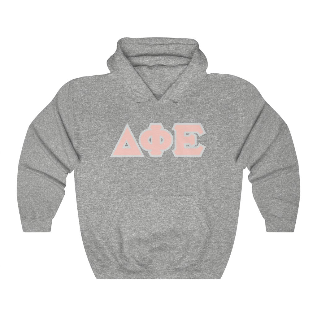 Delta Phi Epsilon Printed Letters | Peach with Grey Border Hoodie