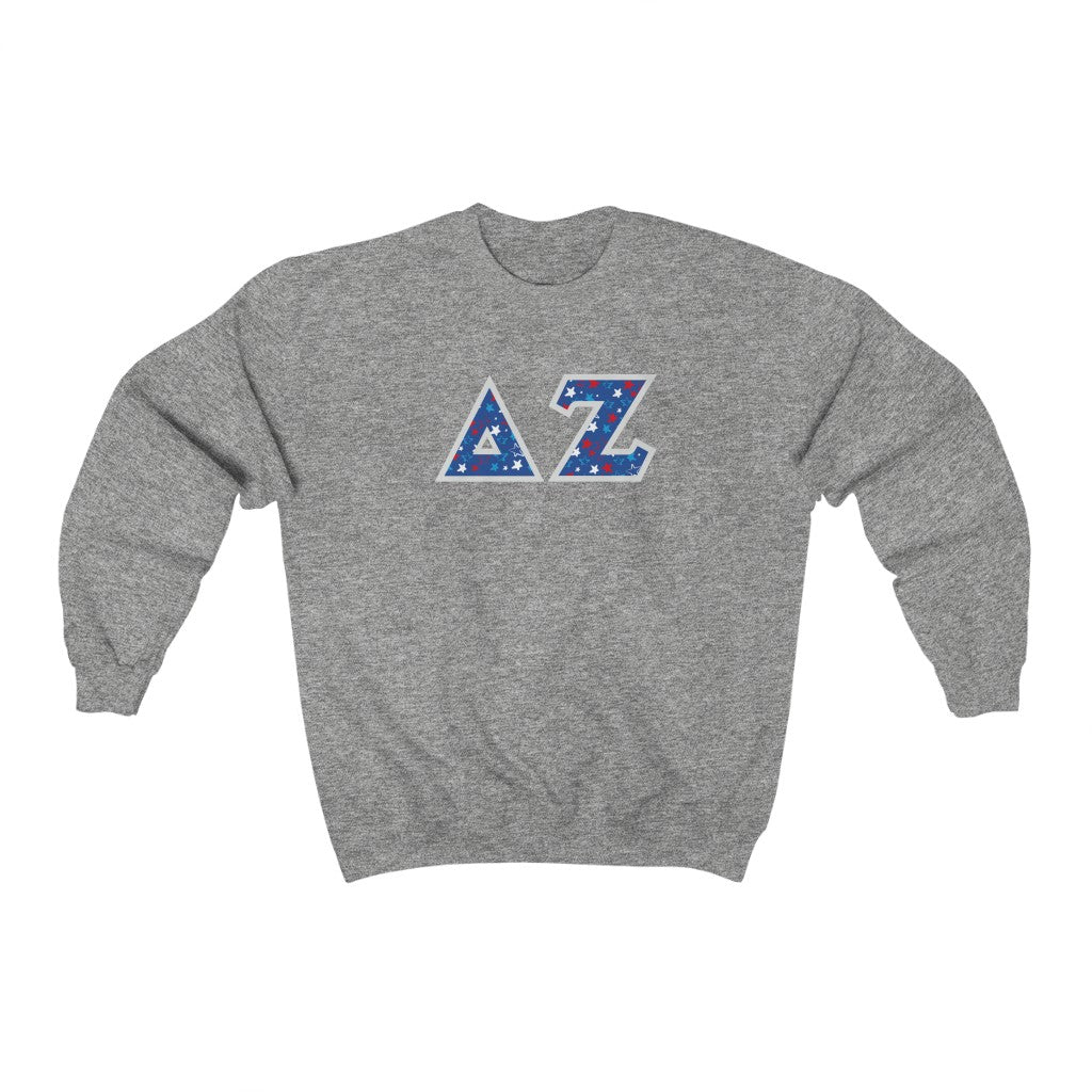 Delta Zeta Printed Letters | USA Stars Crewneck