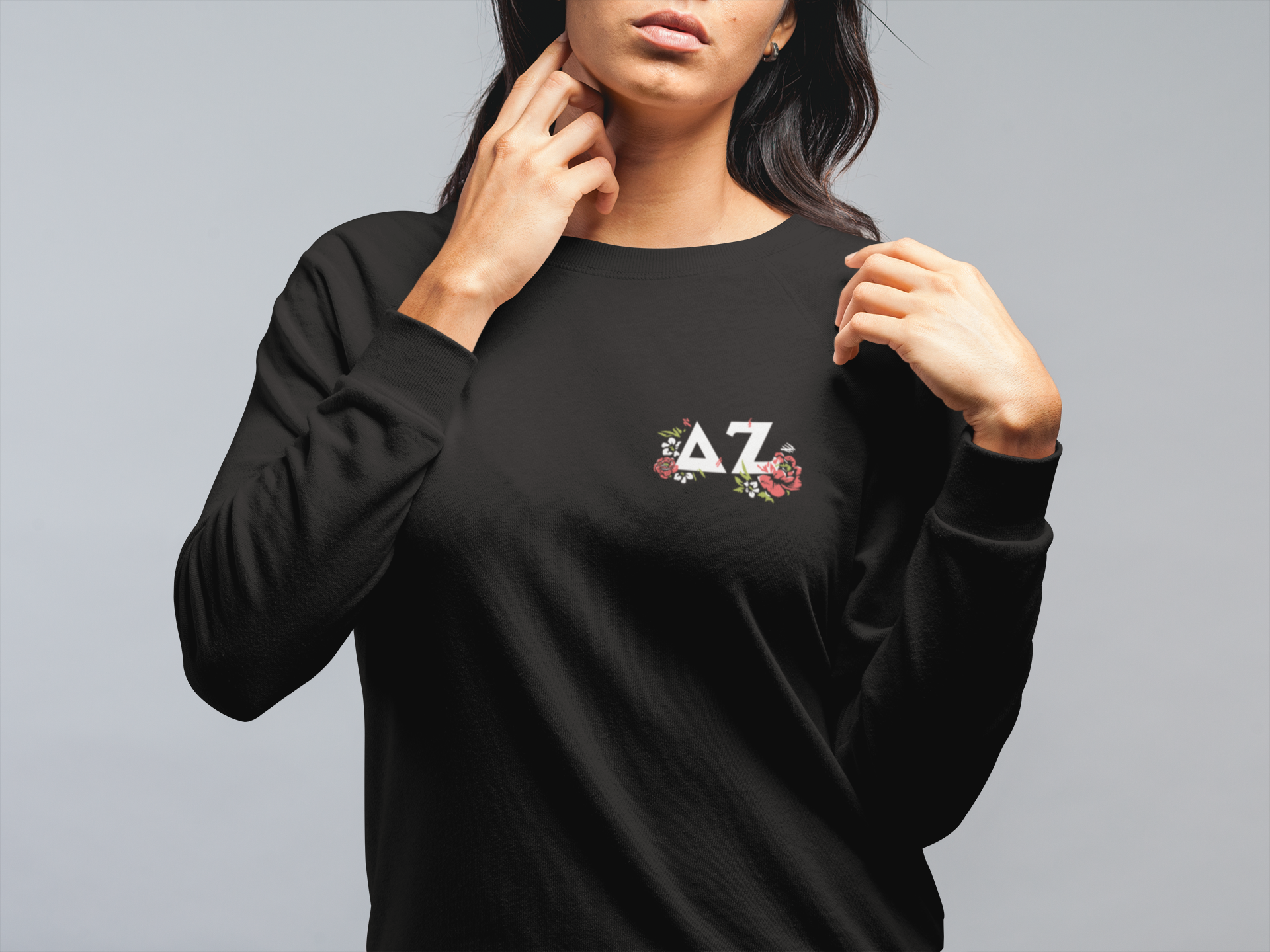 Delta Zeta Graphic Crewneck Sweatshirt | Grunge Roses