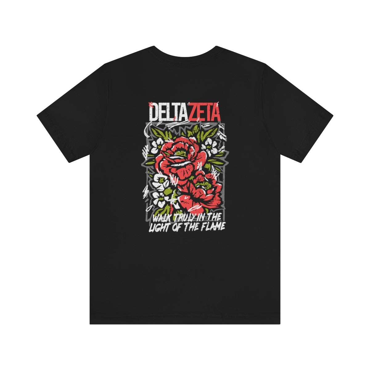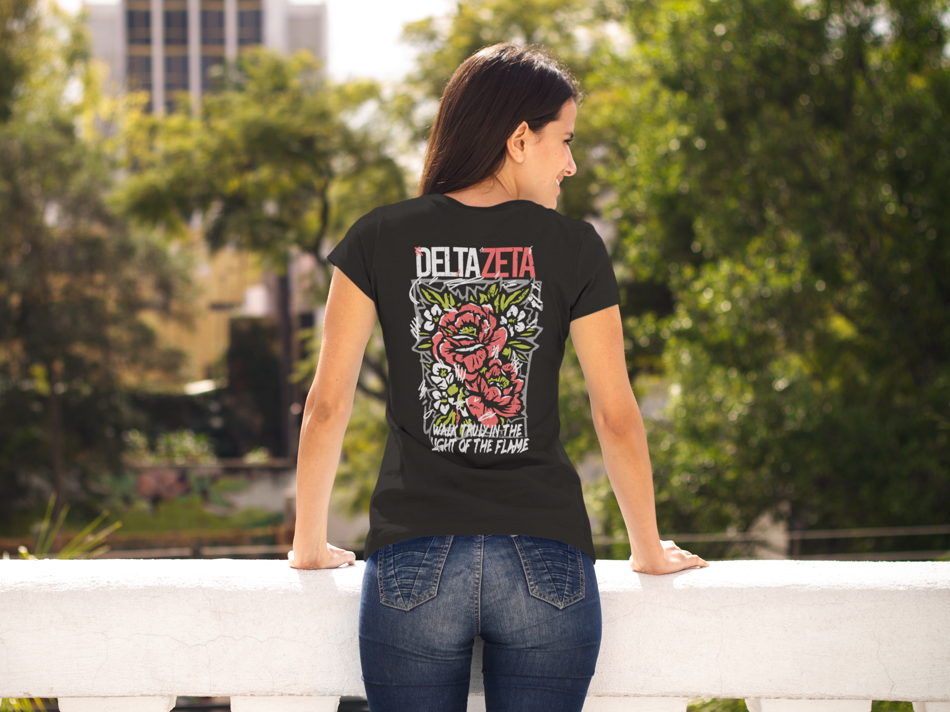 Greek State of Mind offers this Delta Zeta Grunge Roses design in a number of different style garments. This is the perfect gift for any sisters of Delta Zeta. This design can be customized for any group event such as recruitment, bid day, formal, etc. Show off your DZ pride today!
