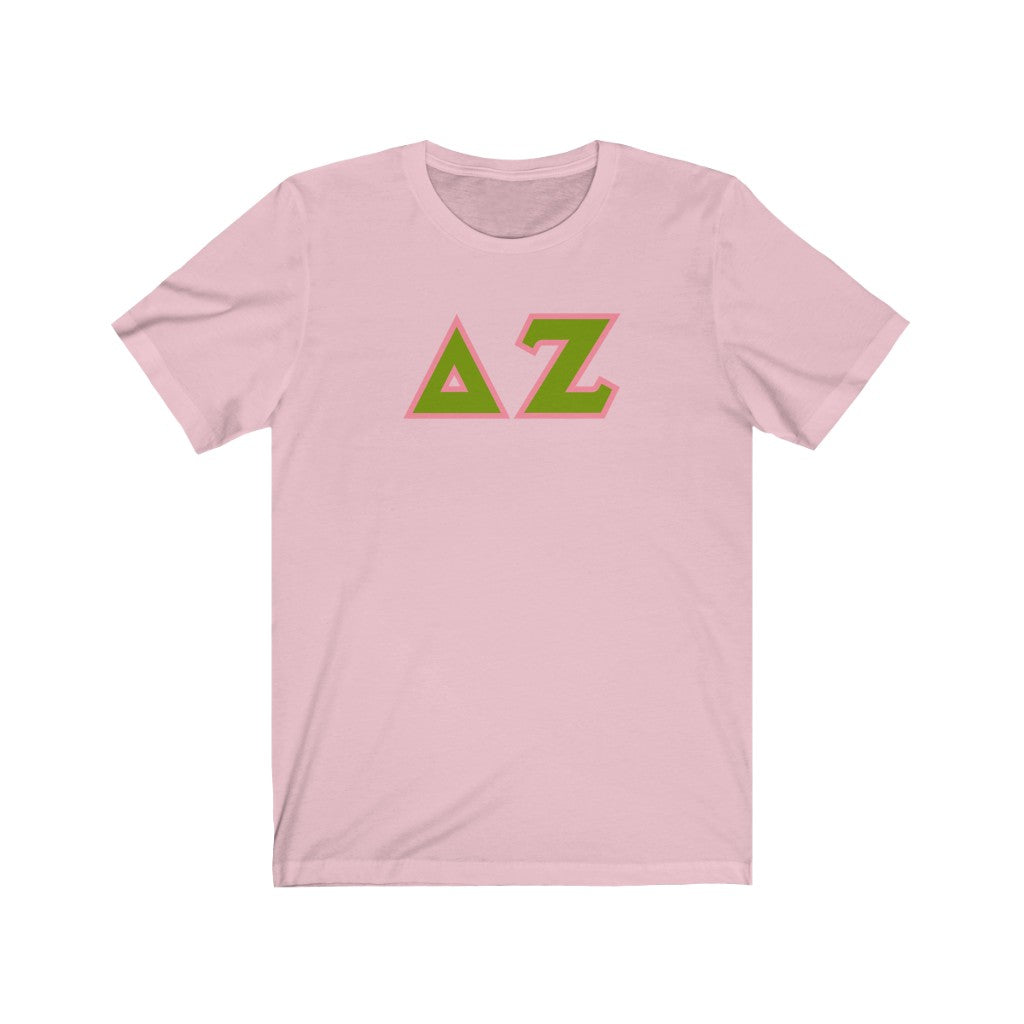 Delta Zeta Printed Letters | Green & Pink Border T-Shirt