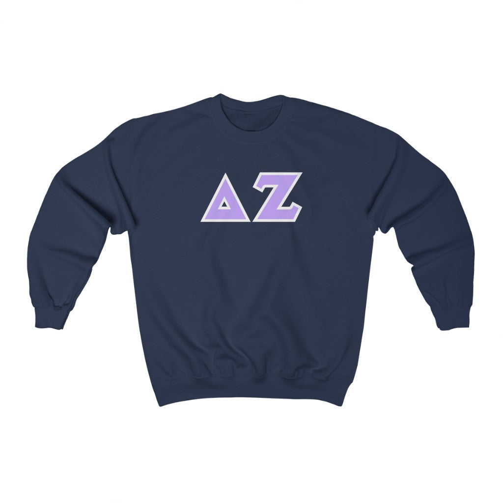 Delta Zeta Printed Letters | Violet & White Border Crewneck