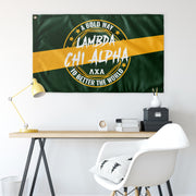 Dress up your space with a high quality wall flag. This 36”x60” wall flag is made of 100% polyester knit; equipped with grommets for an authentic look and feel. The flag is a one sided semitransparent print perfect for indoor applications. Indoor Use Is Suggested to Maximize the Life of the Flag.