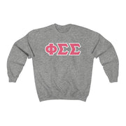 Phi Sigma Sigma Printed Letters | Pink with White Border Crewneck