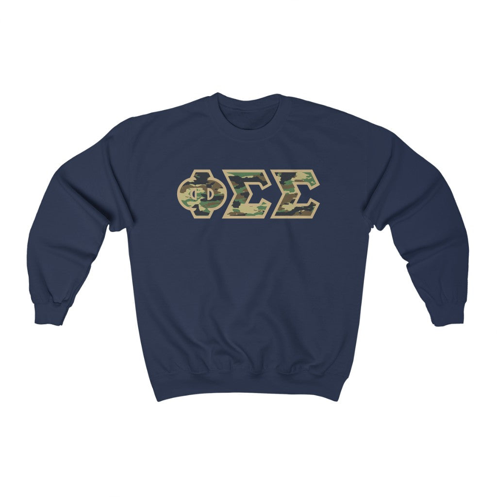 Phi Sigma Sigma Printed Letters | Camouflage Crewneck