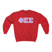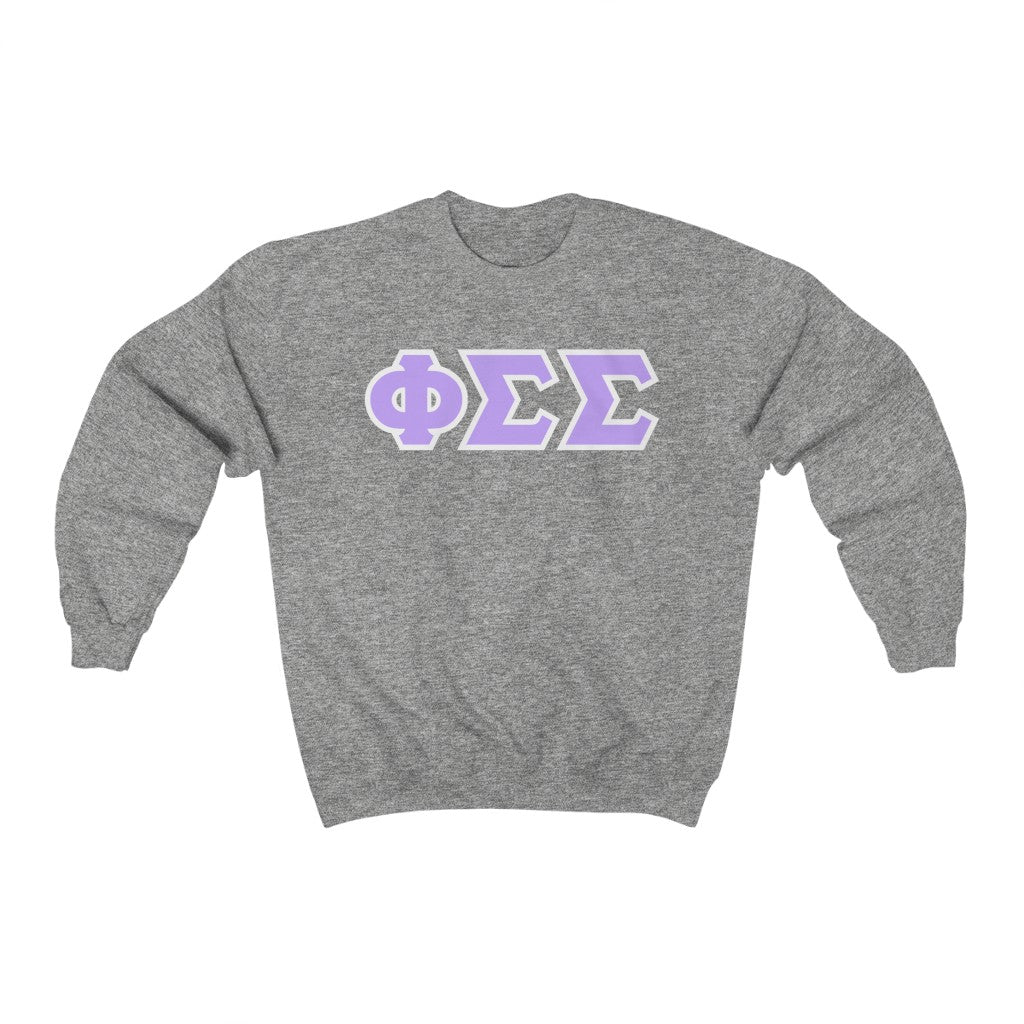 Phi Sigma Sigma Printed Letters | Violet with White Border Crewneck