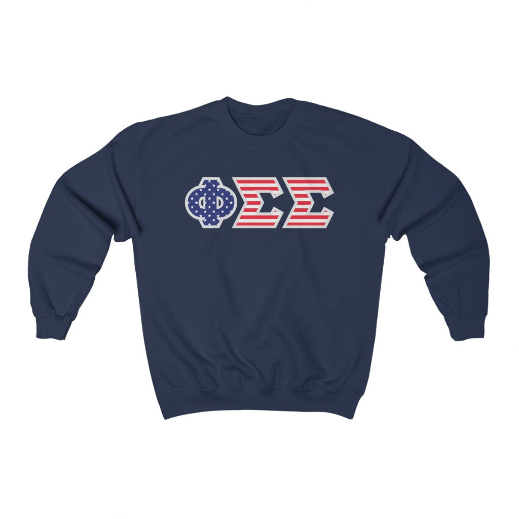 Phi Sigma Sigma Printed Letters | American Flag Crewneck