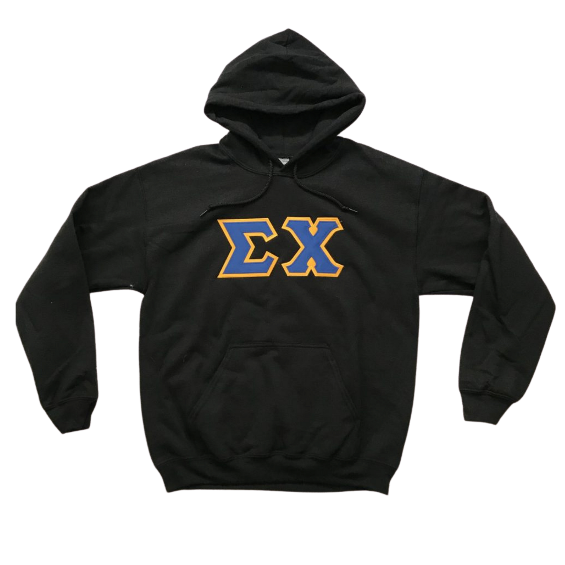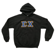 Sigma Chi Stitched Letter Hoodie | Black | Dark Royal with Gold Border