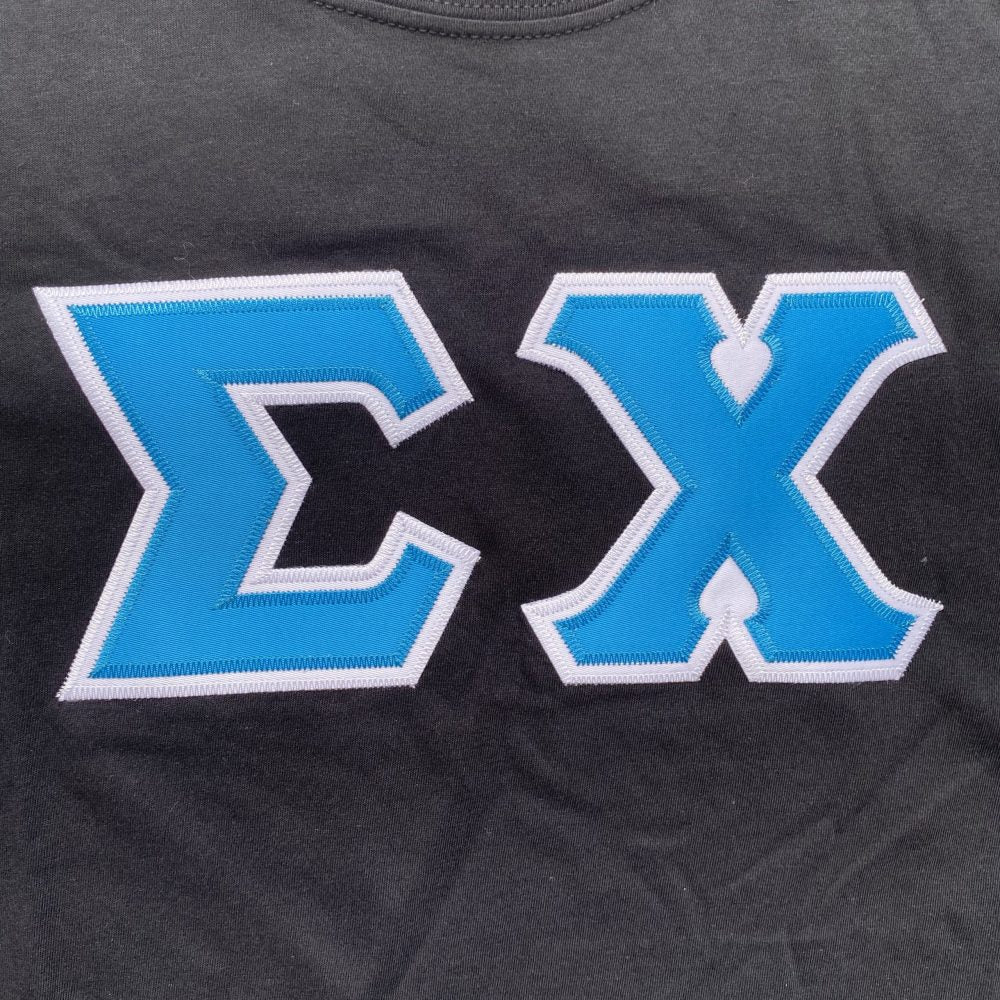 Sigma Chi Stitched Letter T-Shirt | Black | Cyan with White Border